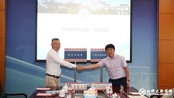 吴爱祥和潘建通为“博汇特·北科大水处理工艺及环境材料研发实验室”和“北京科技大学工程实践教育基地”揭牌。