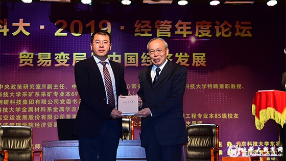 5月19日,由学校东凌经济管理学院主办,以“贸易变局与中国经济发展”为主题的“北科大·2019·经管年度论坛”在教职工礼堂举行。本次论坛特邀嘉宾有:中共中央政策研究室原副主任、中国国际经济交流中心常务副理事长、北京科技大学特聘兼职教授、采矿系采矿专业本69届校友郑新立,中国钢研科技集团有限公司党委书记、董事长、金属材料系金属学及钢铁热处理专业本80级校友张少明,中外运空运发展股份有限公司董事、总经理、管理科学系管理工程专业本85级校友高伟,东凌经济管理学院经济贸易系主任、案例教学与研究中心主任、教授、博士生导师冯梅,北京市青年教学名师、东凌经济管理学院工商管理系教授、博士生导师魏钧。与会嘉宾聚焦经济贸易问题,就当前国际贸易形势和经济高质量发展的新思维、新变化、新趋势,展开了多维度、多视角的深入探讨。