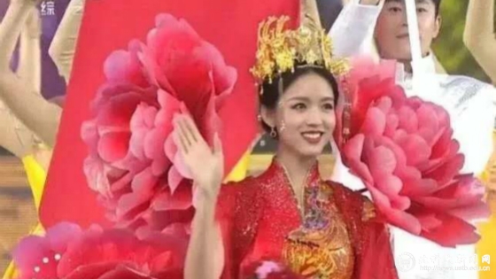我校校友张梓琳一身牡丹中国红代表中国亮相,尽显优雅气质