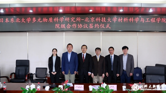 上午10时,日本东北大学多元物质科学研究所—北京科技大学材料科学与工程学院合作签约仪式在材料学院313大会议室举行。国际合作与交流处处长郭侃俊,材料学院院长王鲁宁、副院长曹文斌、院长助理庞晓露,日本东北大学多元物质研究所所长村松淳司和多元物质研究所殷澍出席本次签约仪式。