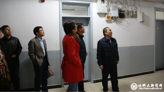 北京科技大学管庄校区经过暑期的改造维修,已经顺利接纳600多名研究生入住学习,为进一步检查管庄校区的后勤运行状况,为管庄校区的学生提供更好的后勤服务,切实保障学生的学习和生活,2017年10月12日上午,副校长王维才、后勤管理处处长张文平、后勤党委书记张俊燕及后勤班子成员和相关中心经理一行到管庄校区进行检查调研。管庄校区院长兼党委书记何进、常务副院长石岩、常务副书记纪永先以及相关工作人员陪同调研。
