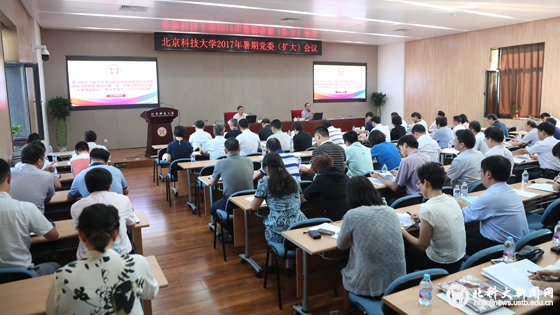 9月7日,我校召开2017年暑期党委(扩大)会议,专题学习传达习近平总书记在省部级干部研修班上的重要讲话精神、习近平总书记给第三届中国“互联网+”大学生创新创业大赛“青年红色筑梦之旅”大学生的回信,以及北京市第十二次党代会精神,研讨学校迎接北京高校《党建和思想政治工作基本标准》入校检查工作和人才工作。会议分别由党委书记武贵龙、校长张欣欣主持,全体校领导、党委委员、各二级单位(党委)负责人参加会议。