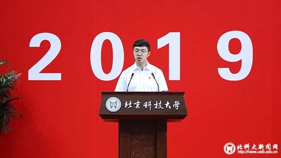 校研究生会主席、化学与生物工程学院浦绍韬代表在校生发言。他分享了自己六年北科生活的所感所悟,表达了对北科大先驱们的深深景仰和作为新时代研究生的使命与担当。他认为,国家和民族需要每个人拼搏的力量,这力量来源于对学术的专注与热忱,来源于对梦想的坚守与追寻,来源于对祖国的热爱与奉献。他号召全体新生,在新时代勇担重任,奋斗不息,用无悔青春为人生涂抹上最亮丽的颜色。