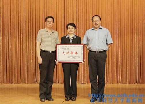 表彰大会在雄壮激昂的国歌中开始,副校长权良柱宣读了2014年获奖名单。本次共表彰了23个集体,21个奖项,共计140人次。其中,北京科技大学科学技术史团队荣获全国教育系统先进集体荣誉称号,并在9月9日召开的全国教育系统先进集体和先进个人表彰大会上受到表彰。校党委书记罗维东、校长张欣欣为获奖教师和集体颁奖。