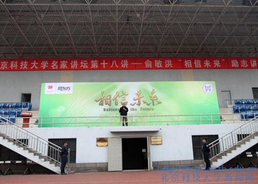 10月27日下午,年度大片《中国合伙人》主角原型、新东方集团创始人俞敏洪做客我校名家讲坛,在学校大操场向近5000名北科学子作了以“相信未来”为主题的励志讲座,我校党委副书记谢辉、团委书记刘晓东与同学们一起聆听了讲座。