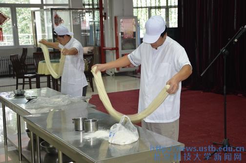 下午2点,比赛正式开始,来自集团饮食中心两个食堂的26名选手分为2组逐一进行比赛。站在案台前,选手们个个拿出看家本领,备料、切菜、点火、煎炒烹炸,个个忙得不亦乐乎。短暂的半小时后,主食组比赛项目猪肉大葱小笼包、三鲜水饺,副食组必选菜鱼香肉丝、烧茄子,自选菜杭椒牛柳、豉椒牛柳、五彩鱼丝、香菇咕咾肉、重庆辣子鸡等,一道道色香味俱全的美味佳肴呈送到评委面前。随后,表演组还进行了拉面花样表演,技术手法纯熟,使观众们看得眼花缭乱,大开眼界,引来阵阵喝彩。