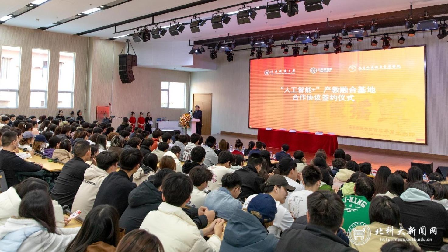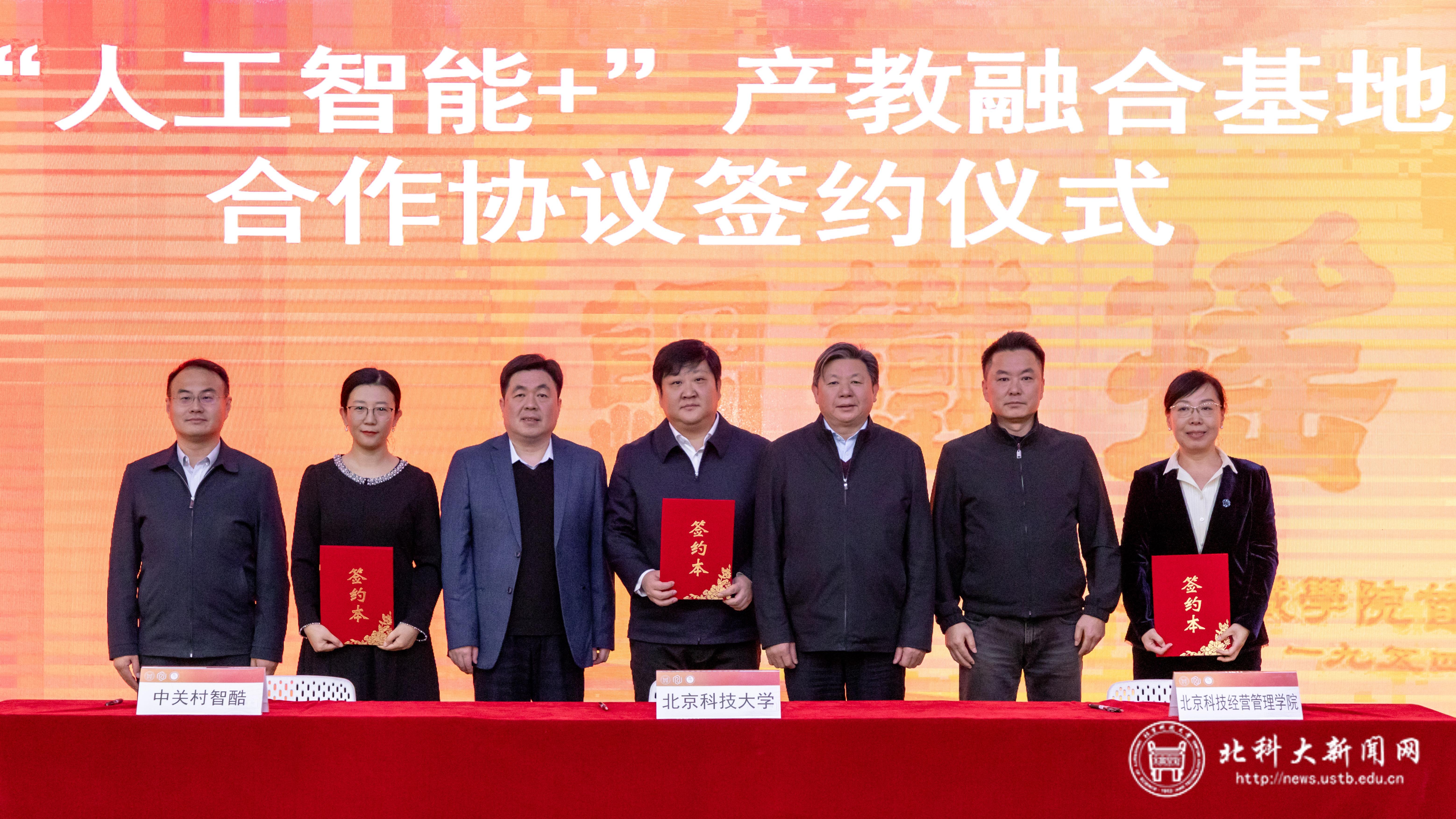 北科大新闻网11月19日电(通讯员 付晨)11月18日,学校与北京中关村智酷双创人才服务股份有限公司、北京科技经营管理学院在学校沙河创新园区成功举行“人工智能+”产教融合基地合作协议签约仪式。北京市昌平区副区长马春秀、未来科学城管委会校城融合处处长熊玉川,学校校长杨仁树,北京中关村智酷双创人才服务股份有限公司董事长赵强、产教融合部部长卢文静,北京科技经营管理学院理事长郑役兵、校长潘秀峰,以及三方有关单位负责同志出席活动。