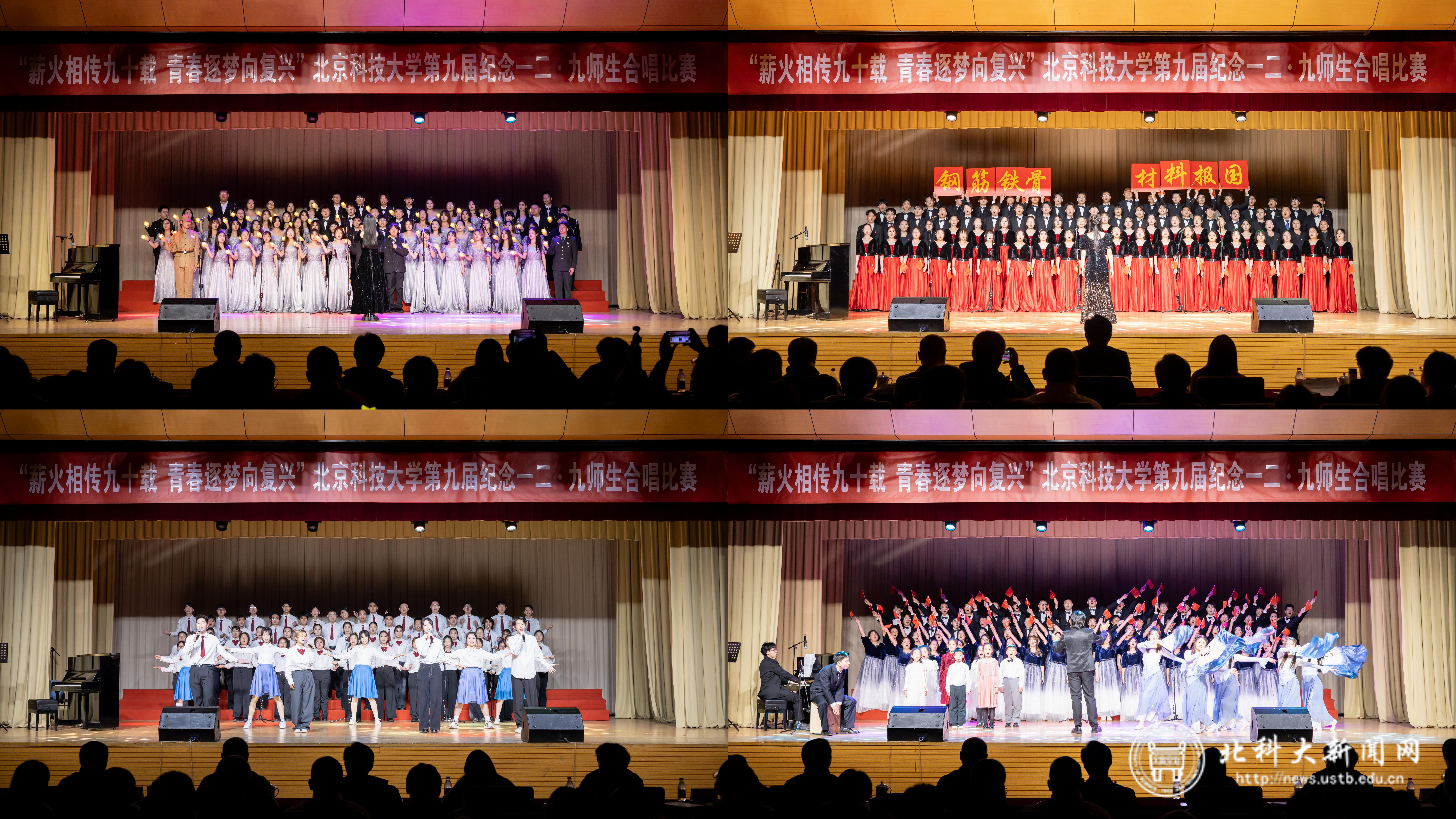 本届比赛以“薪火相传九十载,青春逐梦向复兴”为主题,设置“铭记·烽火岁月”“赓续·精神血脉”“淬炼·钢铁之魂”“奔赴·鼎新未来”四大篇章,来自全校27个学院及培养单位的师生组成20支参赛队伍,演绎了30余首合唱作品,既有《保卫黄河》《南泥湾》《没有共产党就没有新中国》等红色经典,也有《我爱你中国》《新的天地》《不忘初心》等时代新声,还有《少年中国说》《如愿》《明天会更好》等青春励志歌曲。同学们以激昂的歌声、动人的旋律和富有创意的舞台表现,展现了北科青年与时代同频、与祖国同行的精神风貌。
