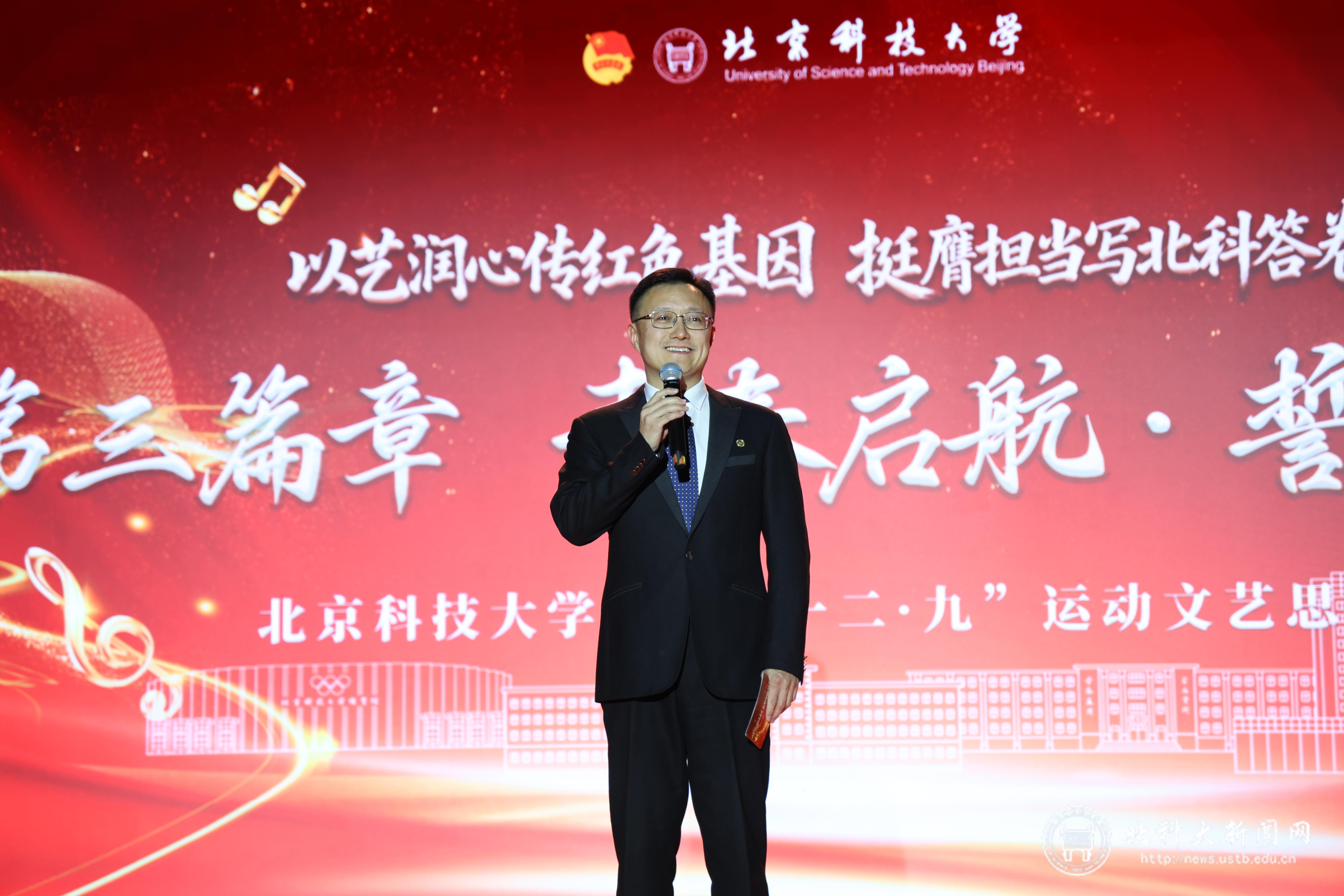 北科大新闻网12月10日电(通讯员 邢子纯)12月9日,校团委联合马克思主义学院在学校教职工礼堂共同举办“以艺润心传红色基因 挺膺担当写北科答卷”纪念“一二·九”运动文艺思政课。中国科协青少年科技中心资源发展处副处长王伟,我校采矿77级校友刘生月,轧87级校友陈东卫,校党委副书记郑安阳,党委常委、宣传部部长尹兆华出席活动。