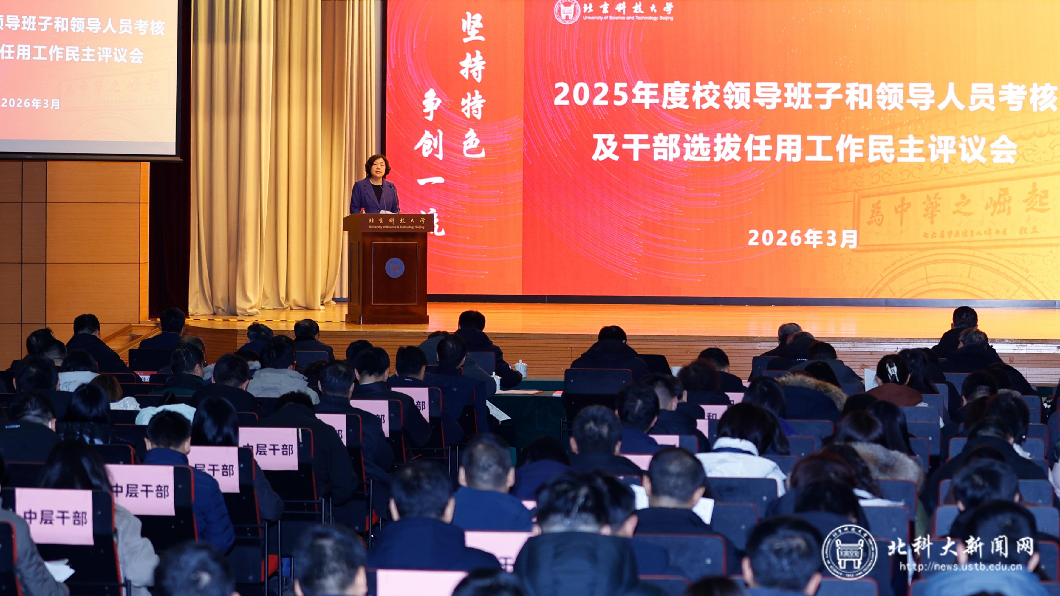 北科大新闻网3月10日电(通讯员 贾皓)3月5日,学校召开2025年度校领导班子和领导人员考核及干部选拔任用工作民主评议会。学校领导班子成员、中层干部及其他各方代表320余人参加了会议。