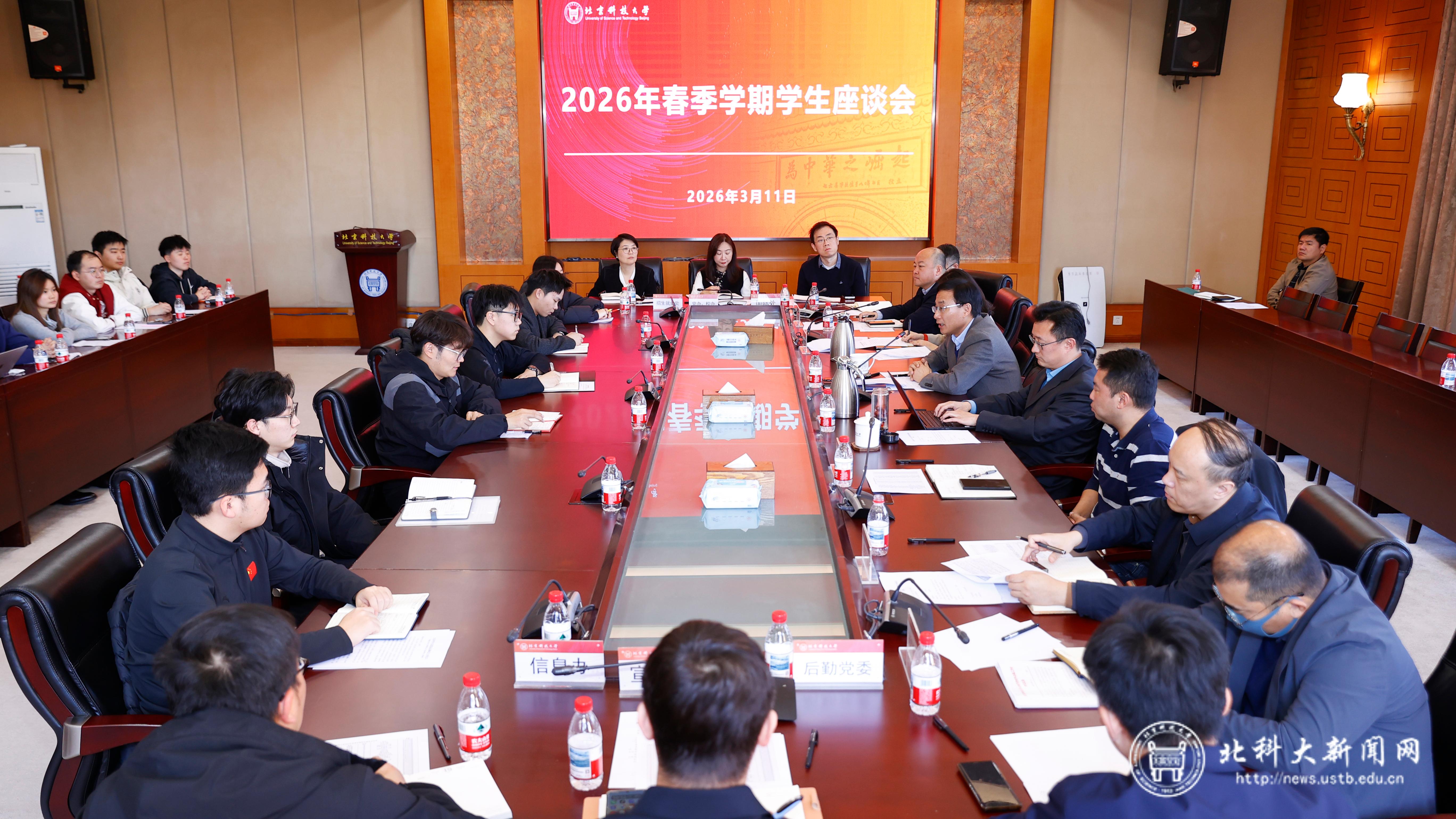 北科大新闻网3月12日电(通讯员 陈睿)3月11日,2026年春季学期学生座谈会在办公楼306会议室举行。校长吕昭平、党委副书记郑安阳、相关职能部处负责人出席,与各学院和研究生培养单位学生代表,校学生会、校研究生会主席团成员代表进行了面对面座谈交流。会议由学生工作部(处)部(处)长赵萌主持。