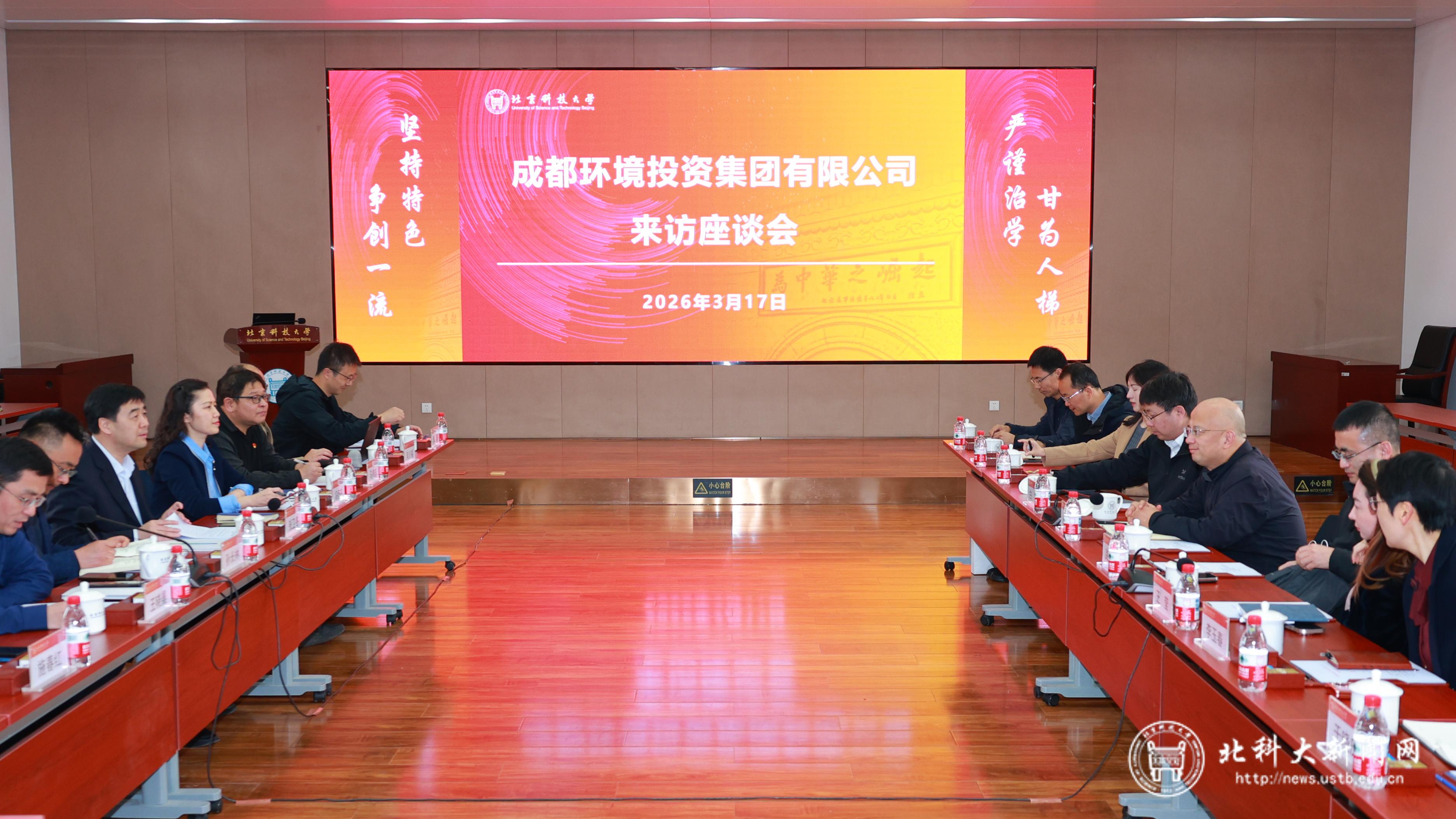 北科大新闻网3月19日电(通讯员 郝西钊)3月17日,成都环境投资集团有限公司董事长张雄正一行来校交流,学校副校长张卫冬出席活动。活动由科技成果转化研究院副院长王晓晨主持。