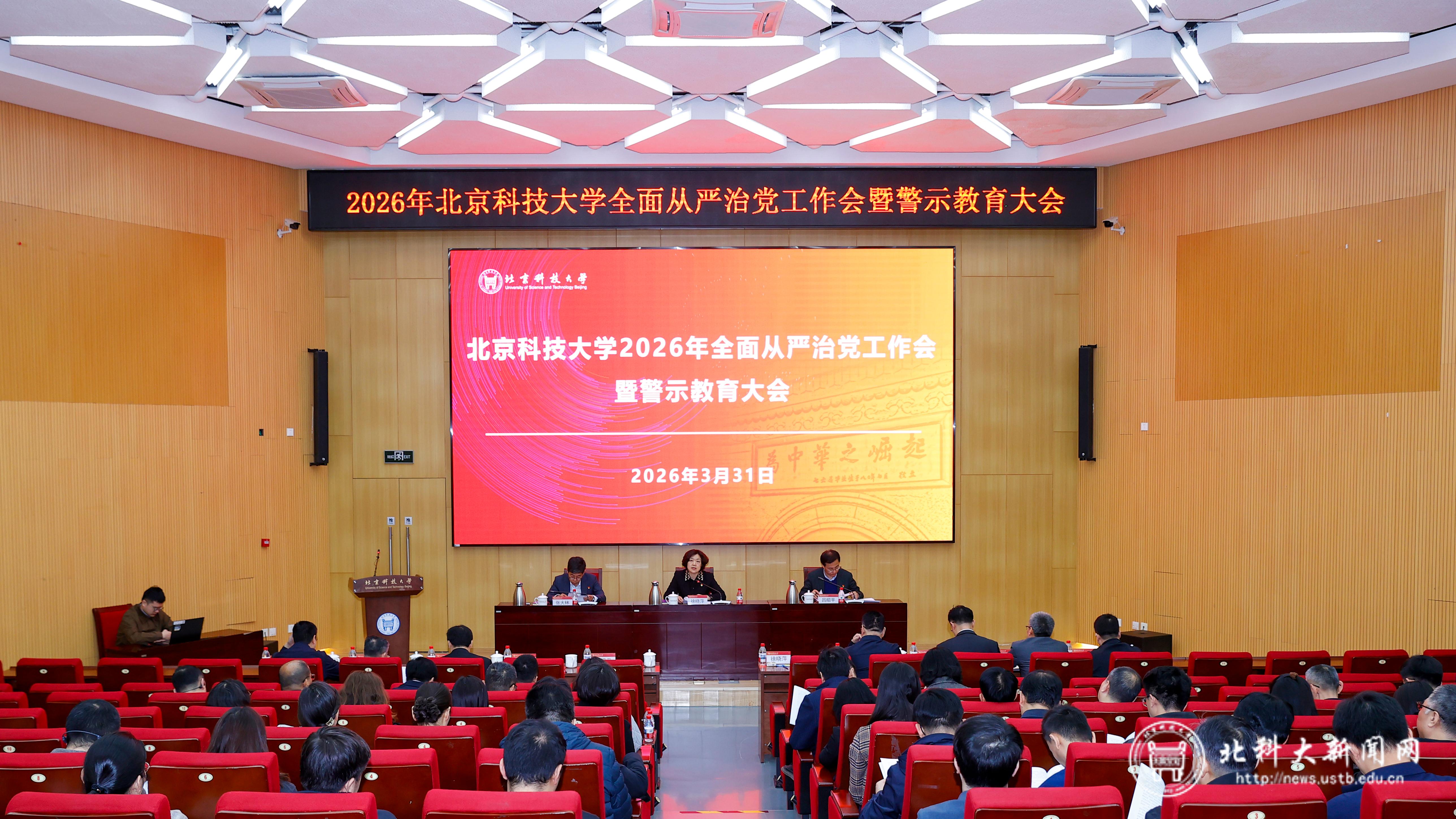 3月31日,学校召开2026年全面从严治党工作会暨警示教育大会。党委书记徐晓萍讲话并部署学校全面从严治党年度工作。党委副书记、校长吕昭平主持会议。党委副书记、纪委书记张大林作警示教育并部署2026年纪检监察工作。
