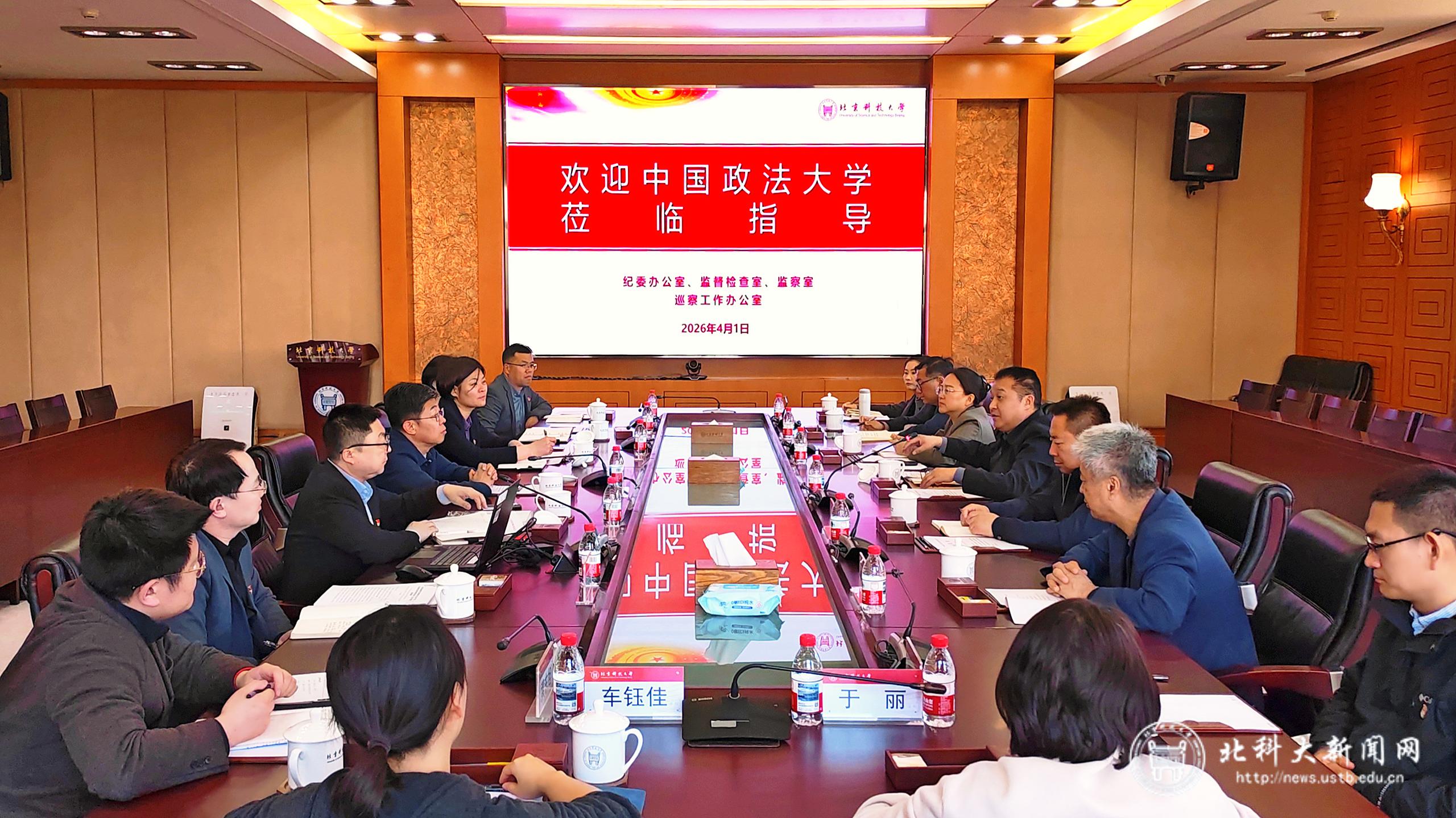 北科大新闻网4月3日电(通讯员 高爽)为深入贯彻落实树立和践行正确政绩观学习教育、“纪检监察工作规范化法治化正规化建设年”工作要求,4月1日,中国政法大学党委副书记、纪委书记胡志钢一行8人来校开展纪检监察系统学习教育调研联学联建活动。学校党委副书记、纪委书记张大林出席会议。