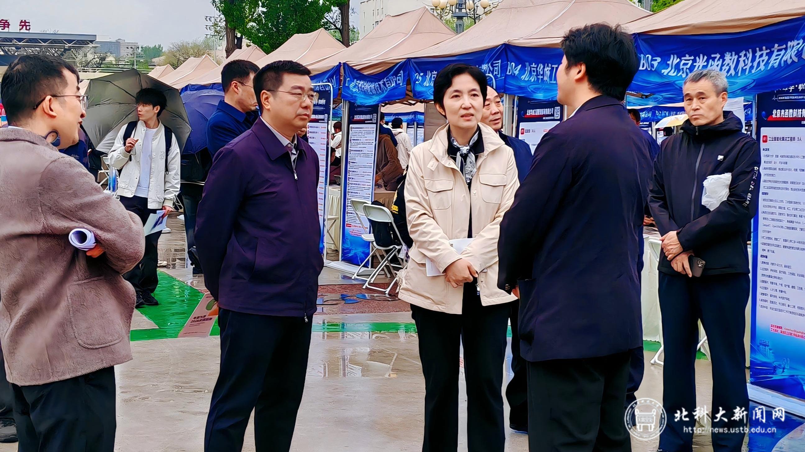 北科大新闻网4月18日电(通讯员 徐萌森,作者 洪鹏飞)4月16日,“京英荟萃・职通未来”2026年海淀区学院路地区高校毕业生春季招聘会在我校举办,党委常委、副校长曹光远,学院路街道党工委书记康云共同出席活动。