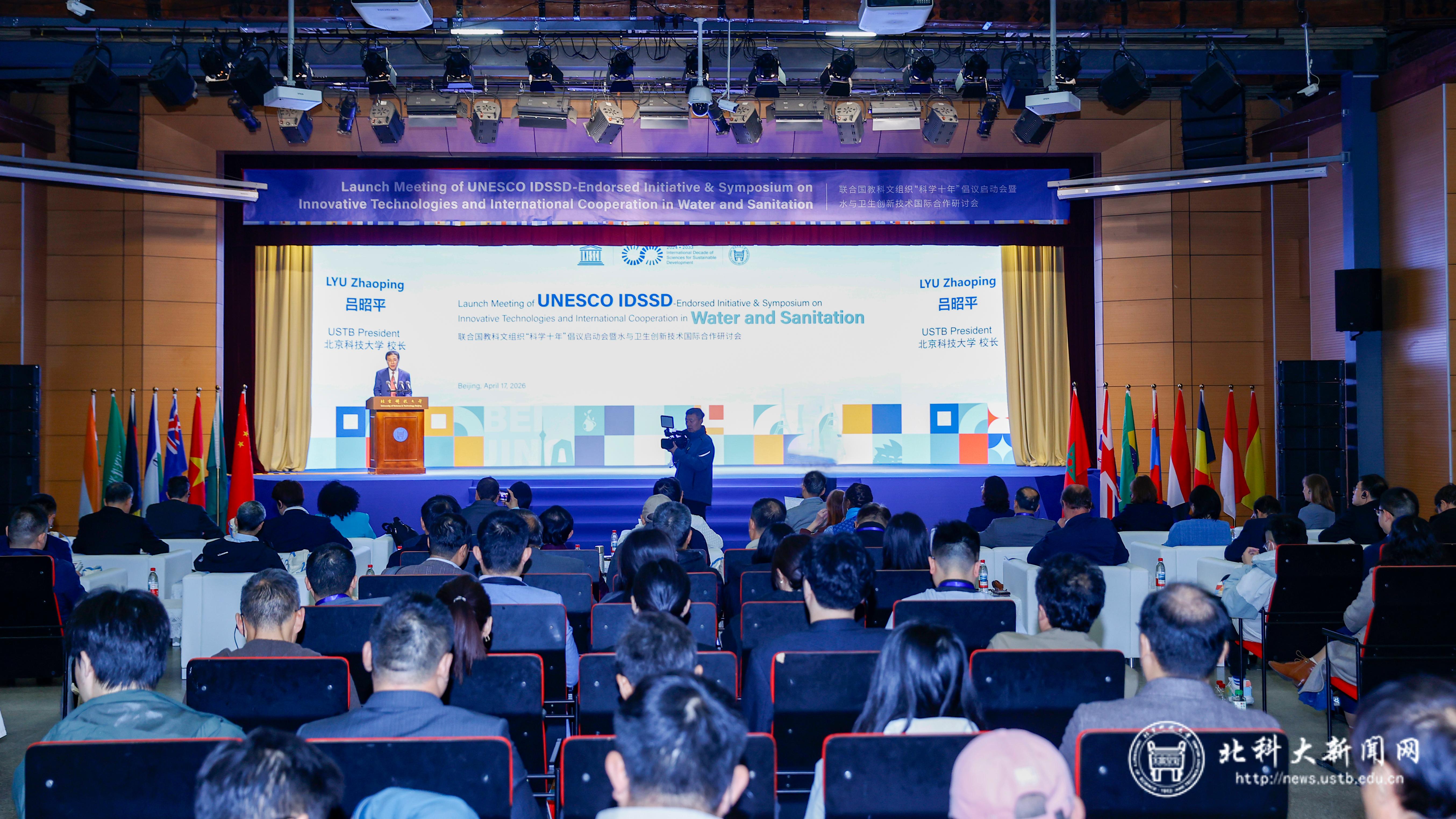 北科大新闻网4月20日电(通讯员 韩雪莲)4月17日,联合国教科文组织“科学十年”倡议启动会暨水与卫生创新技术国际合作研讨会在学校教职工礼堂举行。校长吕昭平、中国联合国教科文组织全国委员会副秘书长葛思颖,以及来自全球16个国家高校、科研机构、国际组织及产业界的专家学者齐聚一堂,共同探讨水与卫生领域创新技术发展与国际合作路径。启动会由副校长焦树强主持。