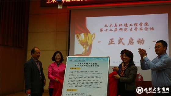 张颖为启动仪式致辞,她充分肯定了土木与环境工程学院在研究生学术能力培养方面取得的优异成绩,并高度赞扬了本届学术论坛的具体安排,对学院领导和同学对学术论坛的支持表示感谢,同时预祝学院学术论坛圆满成功,希望土环学子再创佳绩。随后,到场嘉宾与学生代表一起为本届论坛揭牌,第十二届研究生学术论坛正式启动。