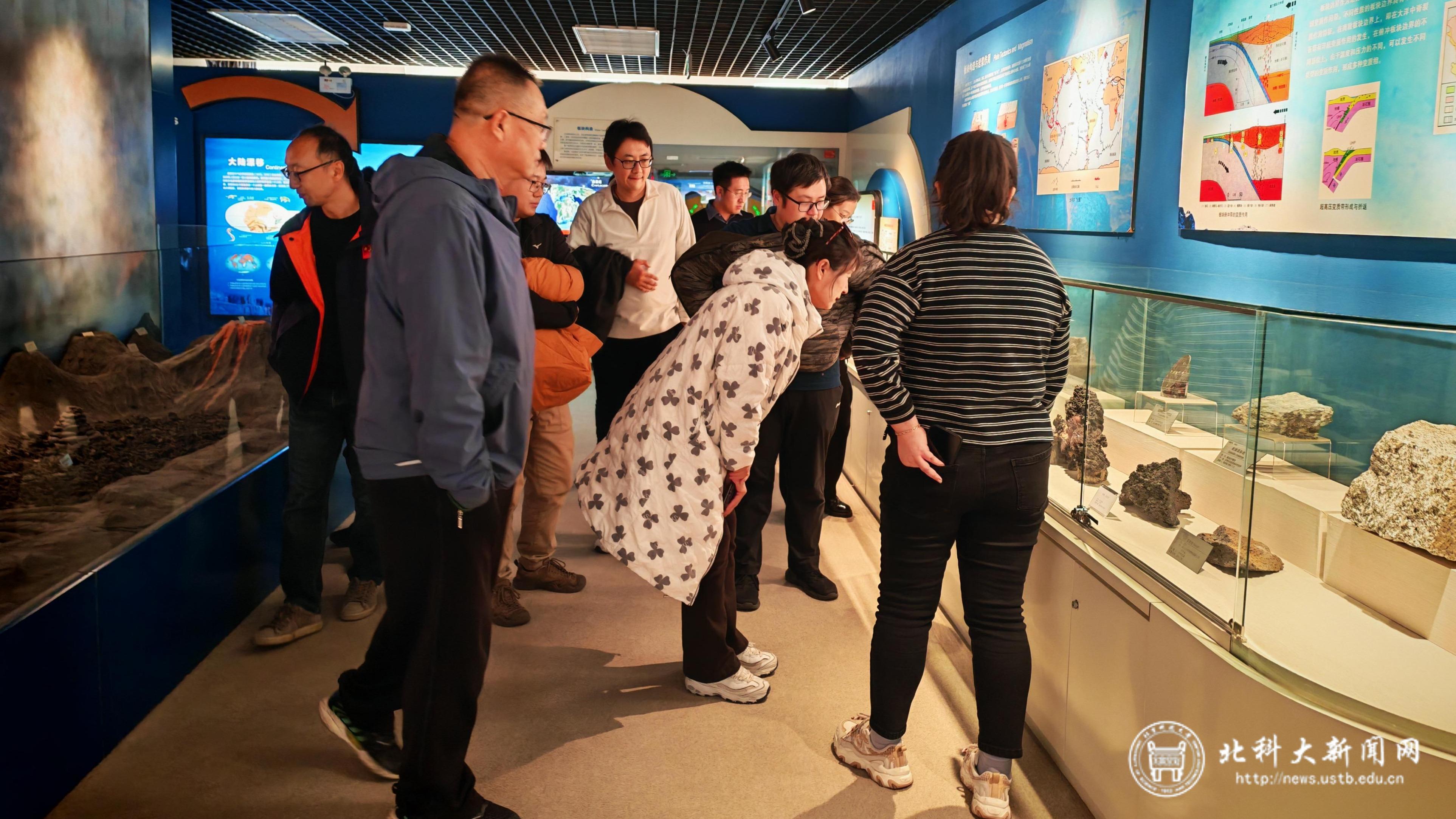 邓军在总结发言中讲到,高校科研工作既要瞄准国际学术前沿,更要紧扣国家战略需求,实现科学目标与国家目标的有机结合。他强调,地质科研工作者要沉下心来,避免“唯帽子”倾向,注重团队传承与青年人才培养,为服务国家矿产资源安全贡献力量。邓军对两校地质学科的深度合作寄予厚望,并祝愿北京科技大学地质系在新时代取得更大发展。谢玉玲代表北京科技大学地质系对中国地质大学(北京)的热情邀请和给予的多方支持表示感谢,并诚挚邀请中国地质大学(北京)的同仁们莅临北京科技大学开展学术交流和支部共建活动。会后,双方参会人员合影留念并一同参观了中国地质大学(北京)地质博物馆。