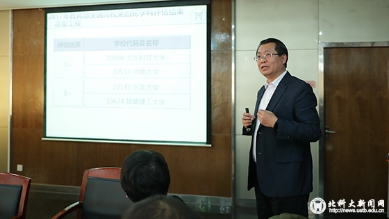 张立峰首先汇报了我校冶金学科的发展情况,重点结合第四轮学科评估的情况分析了冶金学科的优势和劣势,并就今后了发展提出了七条中肯的建议。一是加大力度,培养与引进拔尖创新人才,特别是中青年科技创新领军人才;二是凝炼方向,面对国家重大战略需求,致力于改善民生的科技创新;三是继续推动产学研深度融合和科技成果转化,提高科技进步对于经济的贡献率;四是继续重视发表高水平学术论文,特别是注重发表高水平国内期刊论文,把论文写在祖国大地上,把科研成果应用在中国特色社会主义的伟大事业中;五是注重教育教学,再打造一些精品课程;六是强调科研用房管理的科学化与标准化,提升科研项目的硬件保障水平;七是建设“新时代”冶金学科的“新文化”,提倡光明磊落、勇于开拓、敢于担当、清正廉洁的良好风气。