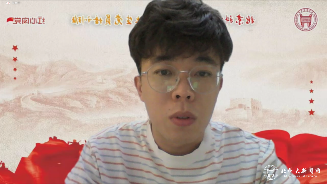 毕业生党员代表纷纷回忆了在北科度过的美好时光,表达了对母校及党组织教育、培养的感激之情。钢铁冶金新技术国家重点实验室硕2019级赵新宇在分享中表示,毕业生党员同志们要牢记“求实鼎新”校训,怀火热之内心,含真诚之目光,不负母校的培养,争做社会栋梁。