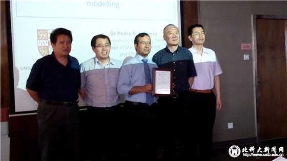 2015年5月26日上午9:30,“冶金大讲堂”第二十七讲在冶金与生态工程学院青钢报告厅举行。本次讲堂由剑桥大学SKF技术中心副主任Pedro Rivera主讲。他在高熵合金的研究、超级贝氏体钢开发、轴承钢的服役应用、材料计算模拟、弹簧钢等方面有着广泛的研究并取得了突出成绩,尤其是在以不可逆热力学(irreversible thermodynamics.)为基础的物理模型的建立有着创新研究成果。冶金学院钢铁冶金系主任张家泉教授主持报告会,学院师生热情参与,与嘉宾进行了友好的交流和深入的互动。