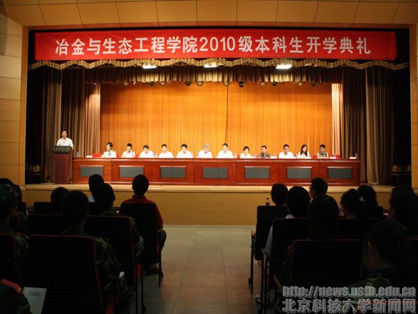 9月12日下午三点,冶金与生态工程学院2010级本科生开学典礼在工会礼堂隆重举行。开学典礼由党委副书记王春义主持,院长朱鸿民、党委书记宋波、副院长王福明、本科教务老师王丽娟、团委书记汪兴等院领导人及10级各班班主任出席了本次会议。