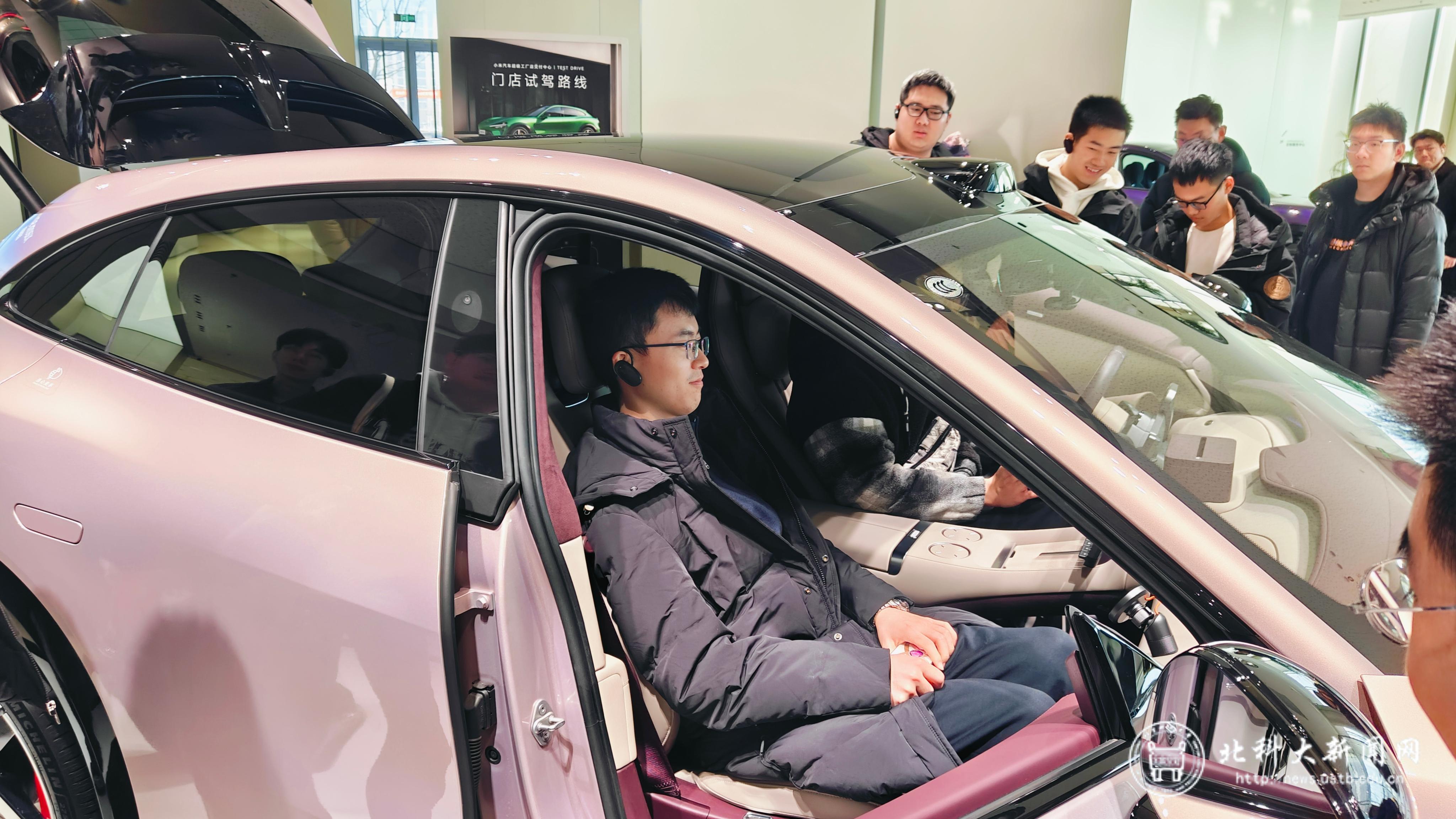 参观首站,师生一行抵达小米汽车工厂综合楼,依次参观零售展厅与技术展厅。在零售展厅,小米工作人员详细讲解了小米汽车的设计理念、性能参数及核心优势。