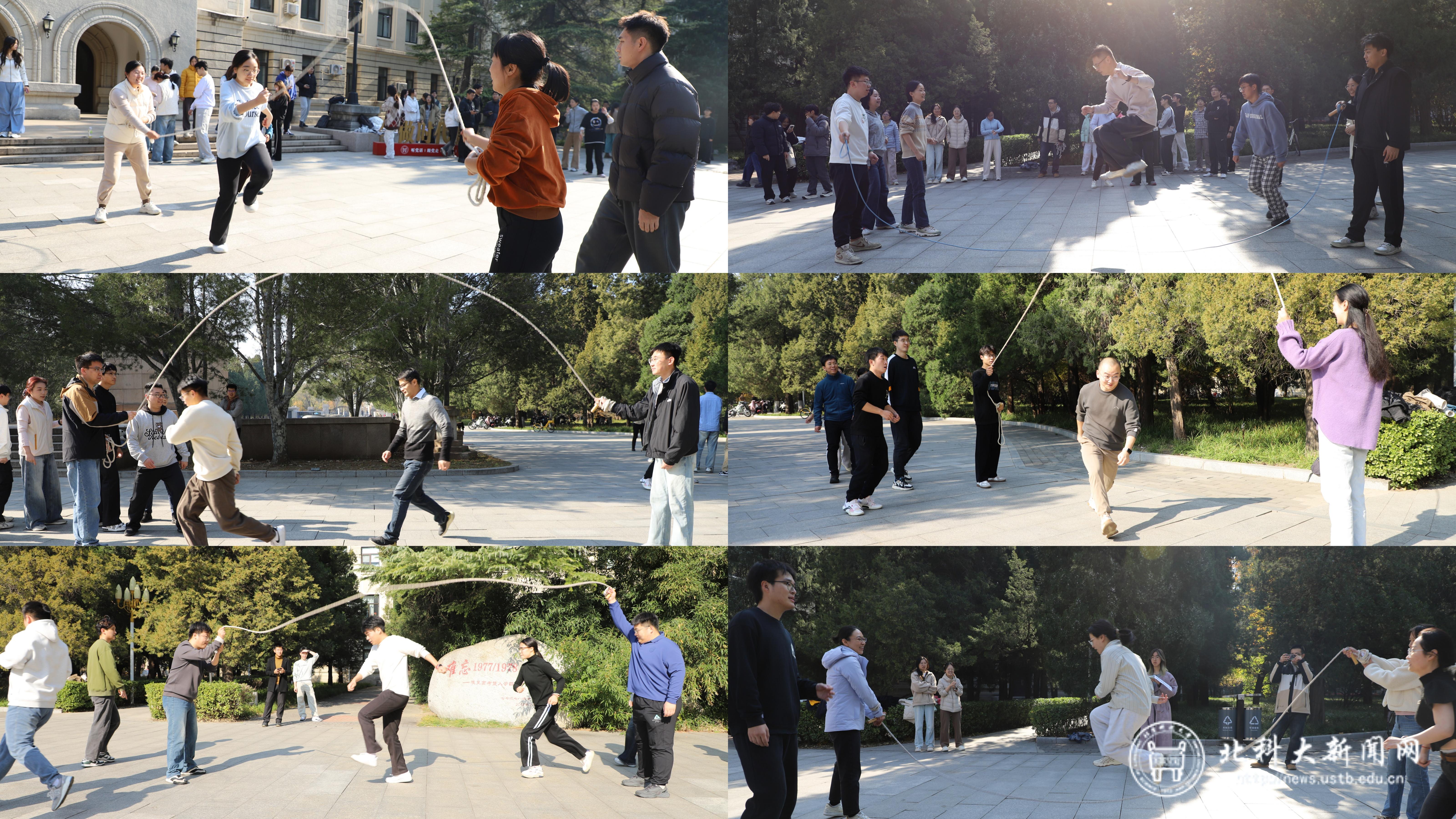 北科大新闻网11月13日电(通讯员 邓新薇)11月4日,“百炼成材,劲逐秋光”秋季体育健身系列活动第二场——第五届师生8字跳绳比赛在主楼西门外开赛,师生们以跃动的姿态延续秋日运动活力,用协作的身影书写团结篇章。