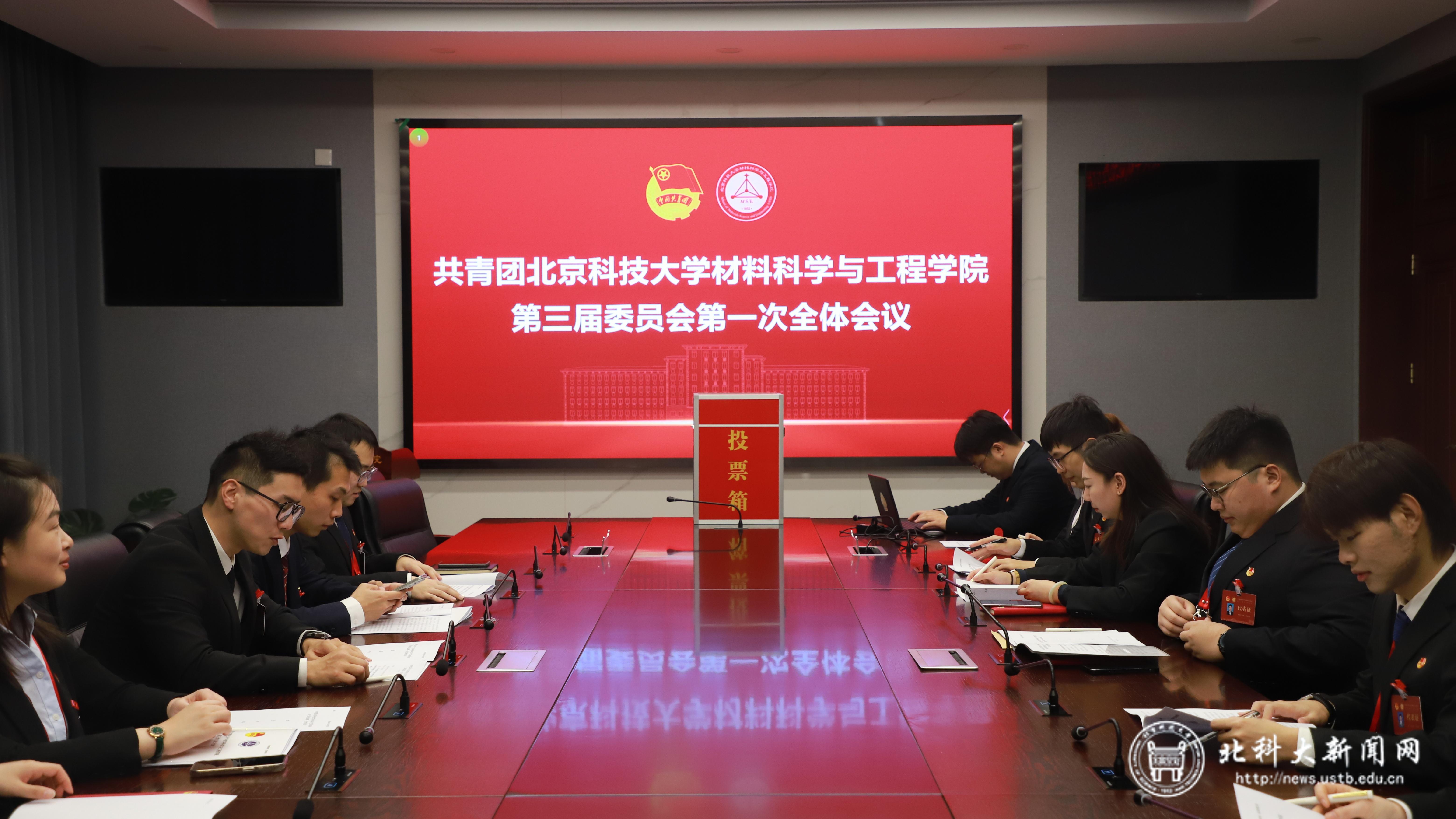 共青团北京科技大学材料科学与工程学院第三届委员会第一次全体会议在主楼313第一会议室举行。会议审议并通过了《共青团北京科技大学材料科学与工程学院第三届委员会第一次全体会议选举办法(草案)》,总监票人、监票人建议名单,宣布了计票人名单,审议通过了第三届委员会书记和副书记候选人建议名单及简介。会议选举产生了新一届团委书记和副书记,相关选举结果将报送学院党委和学校团委。