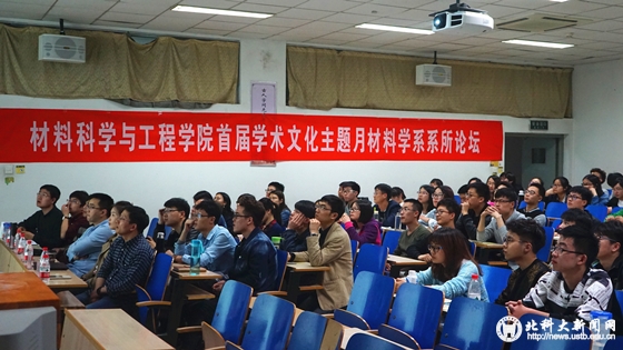 首先,王鲁宁讲述材料学院的历史与传承,用诸多有趣的小故事,详细地为在场的各位同学简述材料学系的发展之路、材料优化设计研究室以及生物医用材料设计和制备等方面的相关知识。报告最后,他寄语在座的材子材女:弟子不必不如师,在真理面前,老师和同学都是平等的,望各位材料学子潜心修学、敢为人先。他的报告赢得了在场老师和同学的热烈掌声。