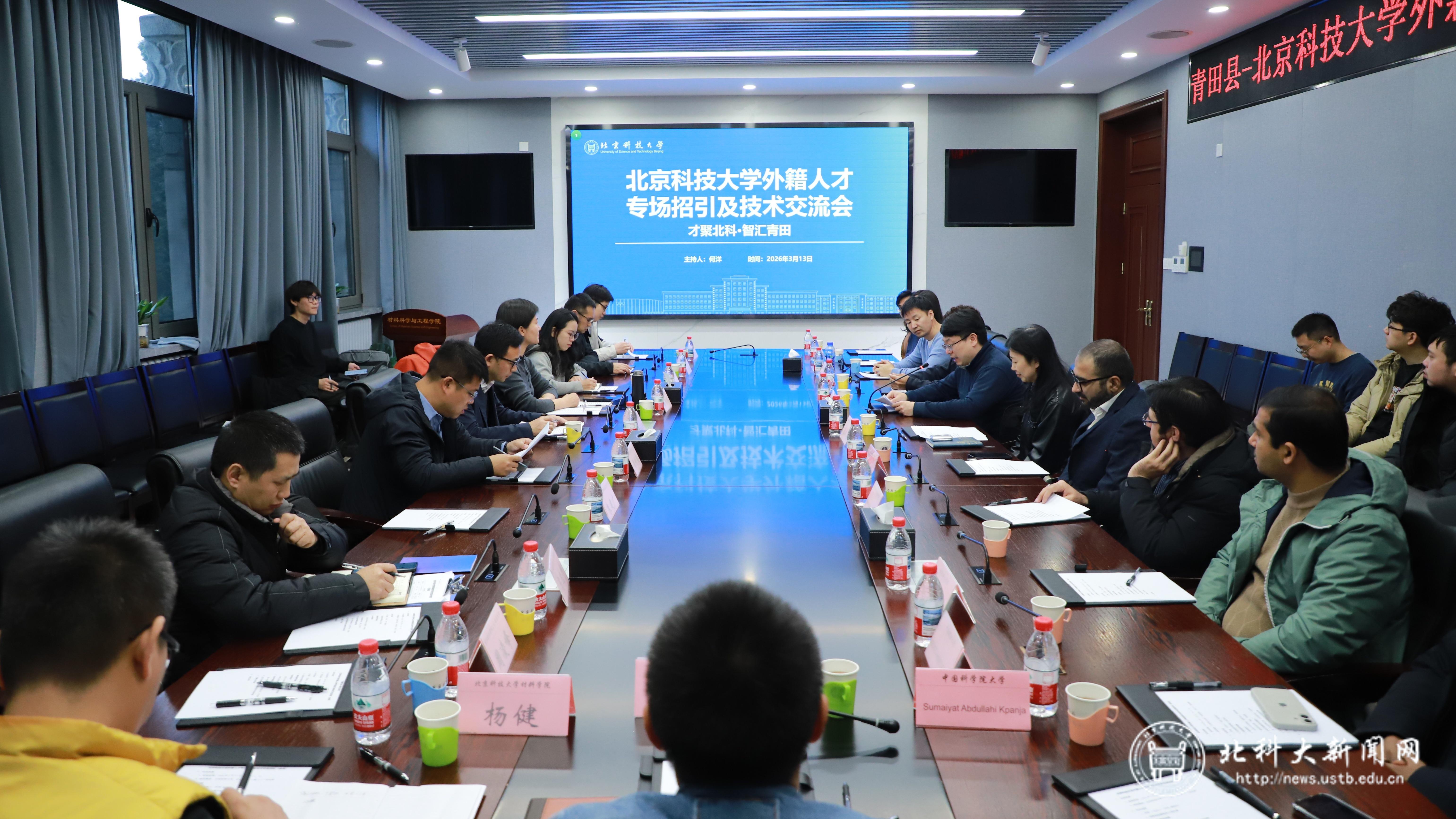 北科大新闻网3月14日电(通讯员 邓新薇)3月13日,“才聚北科·智汇青田”青田县·北科大外籍人才专场招引及技术交流活动在主楼313-1会议室举行。本次活动由材料学院与青田县科学技术局联合主办,旨在汇聚国际智力资源,共促青田产业创新与高质量发展。青田县科技局局长孙成岩,县委组织部副部长杜伟玲,材料科学与工程学院党委书记张秋曼,副院长李静媛、何洋及多位老师出席此次活动,活动由何洋主持。