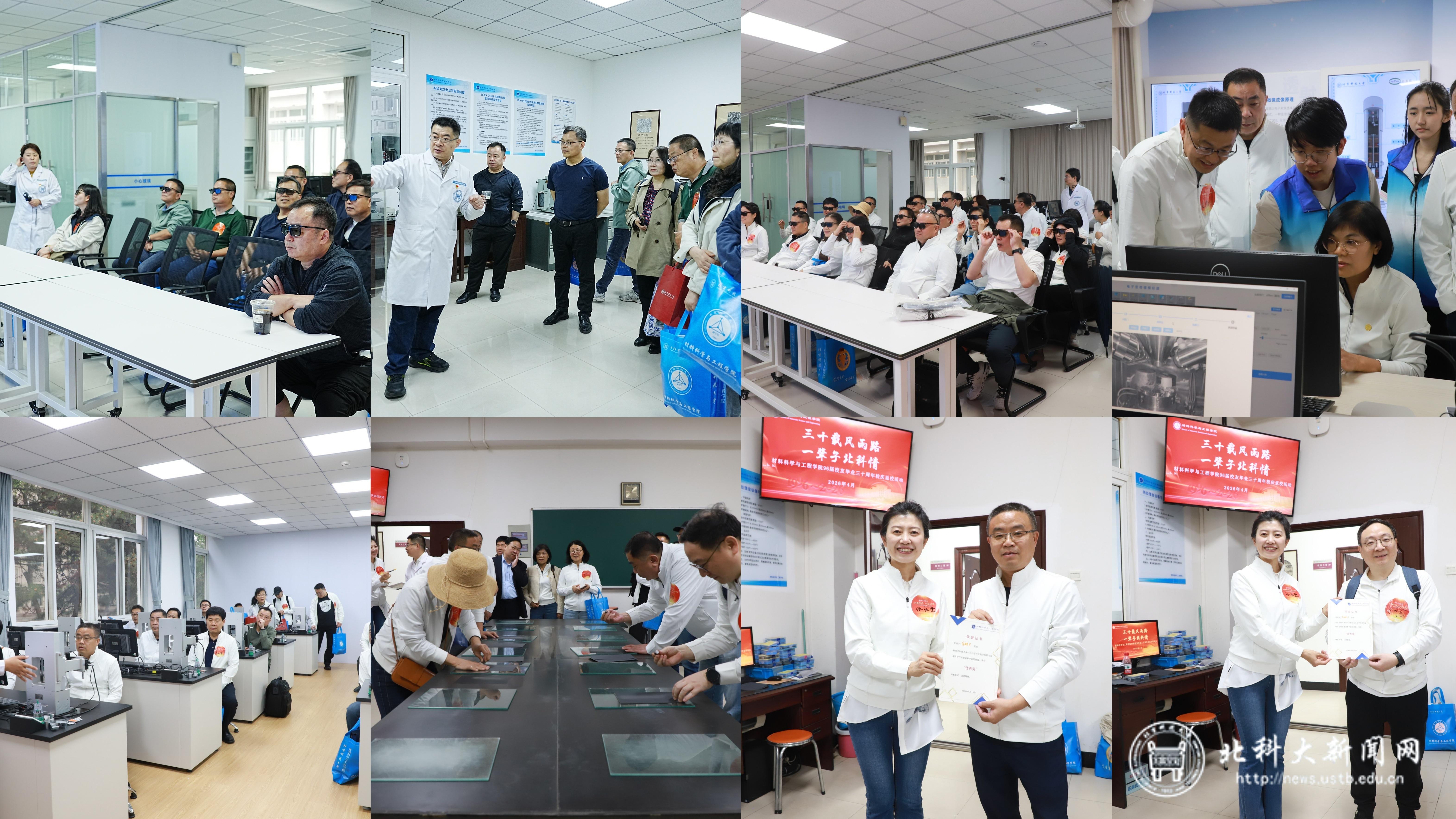 交流结束后,校友及家属走进测试楼,参观国家级实验教学示范中心、国家级虚拟仿真实验教学中心,亲身体验VR实验教学项目并参加校友金相实验技能邀请赛。