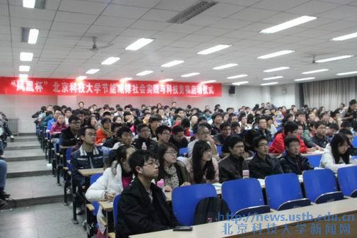 2012年11月21日晚6点30分,由北京科技大学机械工程学院主办的“凤凰杯”北京科技大学节能减排社会实践与科技竞赛启动仪式在机电楼106顺利举行。参加本次启动仪式的领导和嘉宾有我校教务处副处长林海、教学科何志巍、机械工程学院副院长夏德宏、院党委副书记董春阳、院团委书记韩凯儒以及代表我校参加第五届全国大学生节能减排大赛并获得三等奖及三等奖以上的代表团队和有志参加本次大赛的同学们。