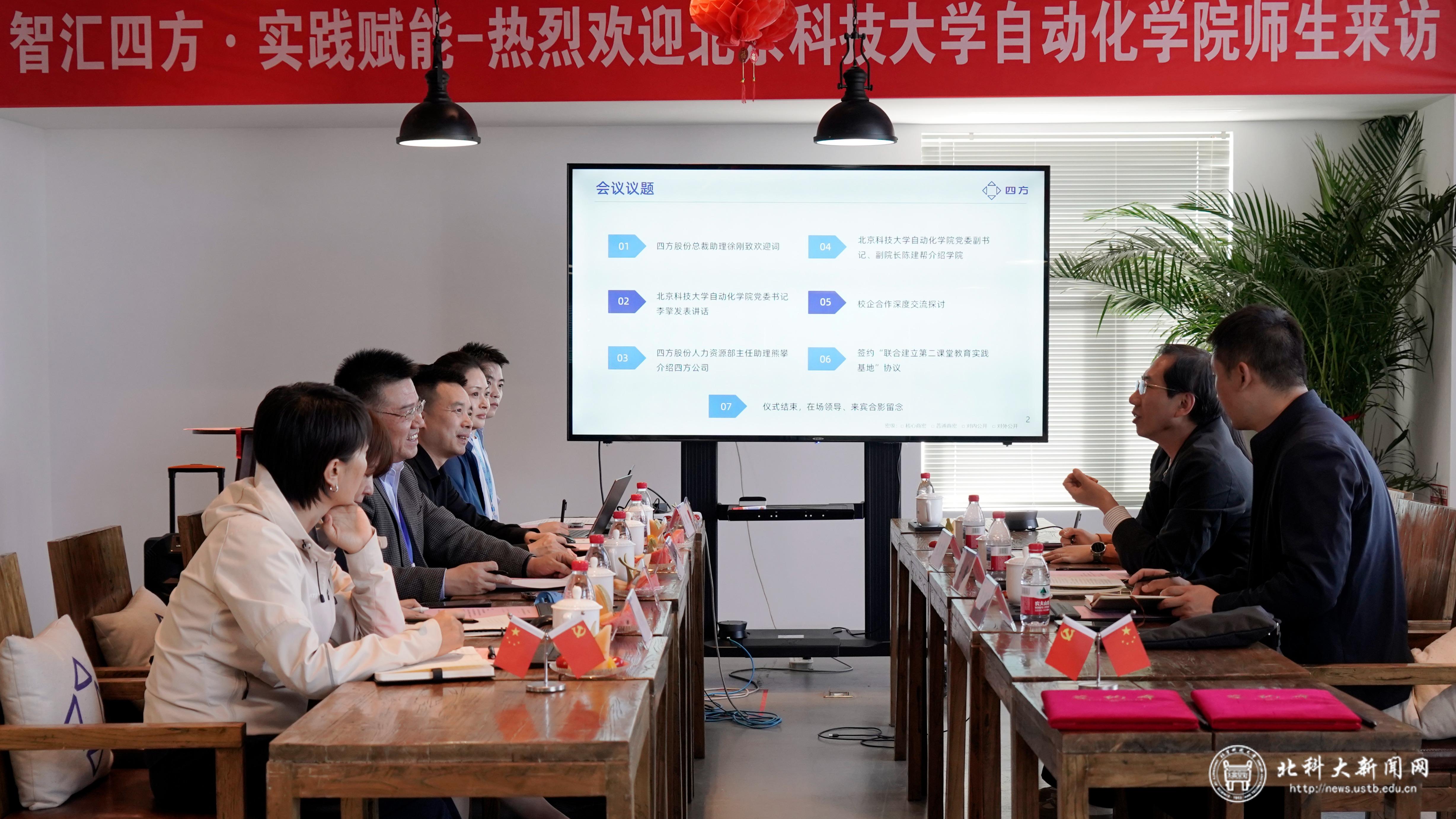 李擎一行参观了企业展厅与实验室,并与四方股份总裁助理徐刚、首席人才官谢勇等进行座谈交流。他感谢了四方股份对于自动化学院毕业生就业工作的大力支持,并表示,学院将紧紧围绕社会发展需求,靶向优化人才培养模式,不断提高学生的核心竞争力。会上,双方签署了第二课堂教育实践基地建设协议,共同探索校企协同的育人新模式,在人才培养、产研合作等方面进一步加强合作。