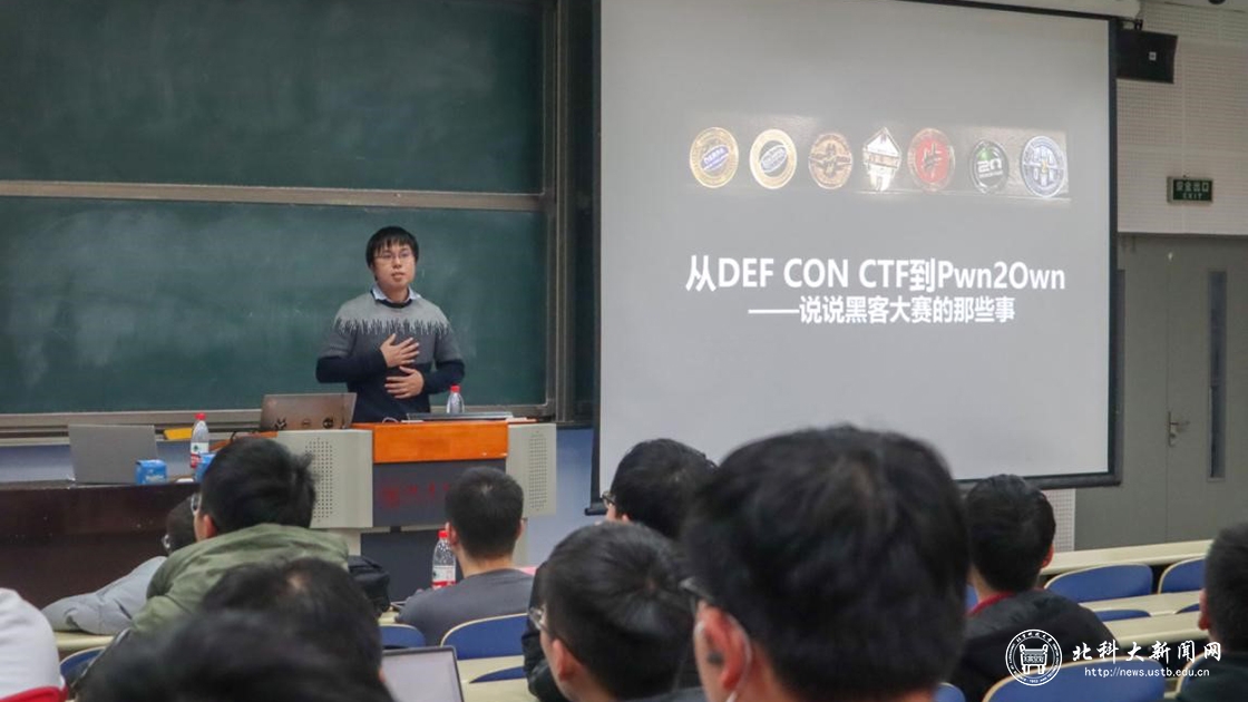 杨坤博士向同学们分享了他的主要经历:作为国内首支闯入DEFCON CTF决赛的蓝莲花(Blue-Lotus)战队队长,他带领团队曾获得DEFCON CTF全球总决赛第二名、Pwn2Own全球第三名。本人也入选 GeekPwn 名人堂,获得有白帽黑客奥斯卡之称的 Pwnie Awards 奖项提名,两次受邀于 Black Hat USA 发表演讲,他的荣誉源自于个人的兴趣、个人潜心钻研,以及在各类挑战中不断提升的能力。