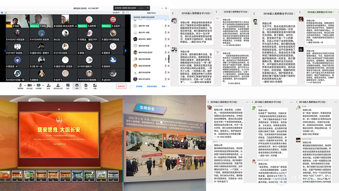 组织生活线上过,理论学习云开展。新冠肺炎疫情防控期间,计通本低年级党支部严格落实每月一次理论学习制度,积极创新党支部组织生活形式,依托学习强国、腾讯会议、微信等线上平台,邀请学院宣讲团开展主题宣讲,开发雨课堂理在线答题模式,着力引导支部成员看时政、学理论、抒己见,通过构建知识传递、案例启发、互动分享的学习模式,竭力打造学习型党组织,推动“两学一做”常态化。