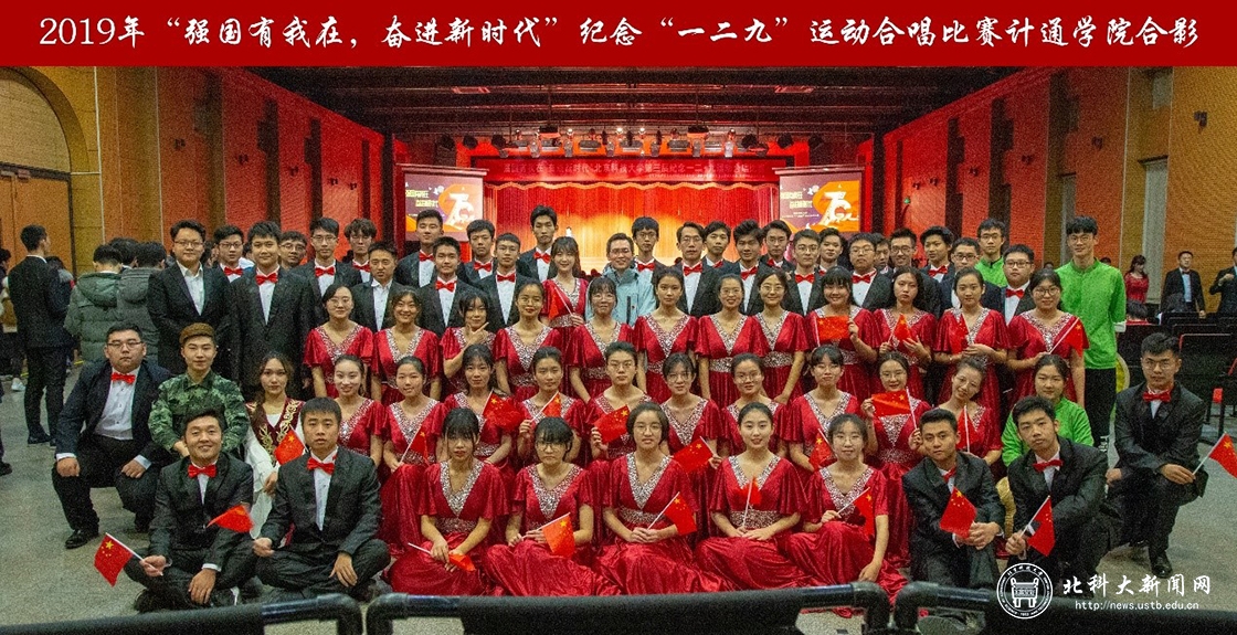 12月9日,“强国有我在,奋进新时代”北京科技大学第三届纪念“一二·九”运动合唱比赛在教职工礼堂隆重举行。我校副校长臧勇,各单位负责同志以及兄弟高校特邀嘉宾出席本次活动。计通学院荣获二等奖。