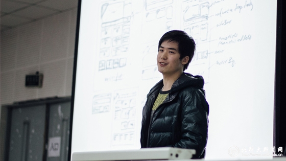 首先出场的是12级计算机专业的学生叶青楠。他曾实习于百度网页搜索部和知乎,是一名健谈的Web前端研发工程师。叶青楠从他与网页开发的渊源谈到他丰富的实习经历,可以用他的讲话中的一个词概括,“酷炫”。他赠予大家一句话:“做喜欢做的事情与持之以恒的心”。他认为,感兴趣非常重要,找到自己的兴趣之所在也非常重要,而被“兴趣之师”引进门之后,就需要近乎疯狂的努力和不懈的坚持,有了这两样,就能成为自己想要成为的那个人。