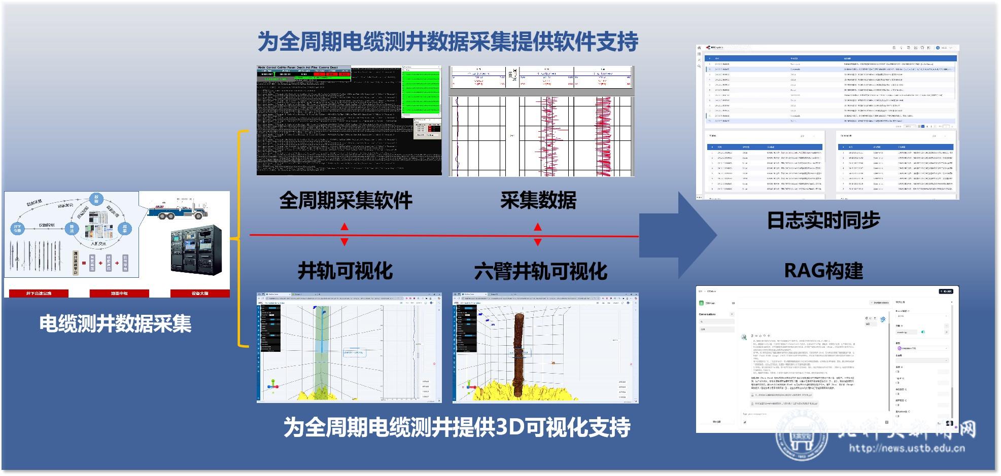 该团队立足全球海上石油服务领军企业中海油服的测井业务数字化转型需求,通过研发部署数据采集与可视化展示系统,构建覆盖全周期的采集模块,实现了井下多维度数据连续监测与三维呈现,推动数字化向智能化演进。一方面基于DeepSeek语义建模能力与RagFlow检索管理机制,研发了定制化RAG知识服务平台,助力工程师通过自然语言交互高效获取作业指导;另一方面研发日志实时传输与动态渲染机制,借WebSocket协议实现低延迟数据推送与可视化,保障高频数据动态展示。当前工作实现了“数据获取—数字展示—智能辅助”的跃升,提升了数据利用效率与作业智能化水平,为后续测井智能决策及远程协同奠定坚实基础。(团队指导教师:李建江 队长:李亿行)