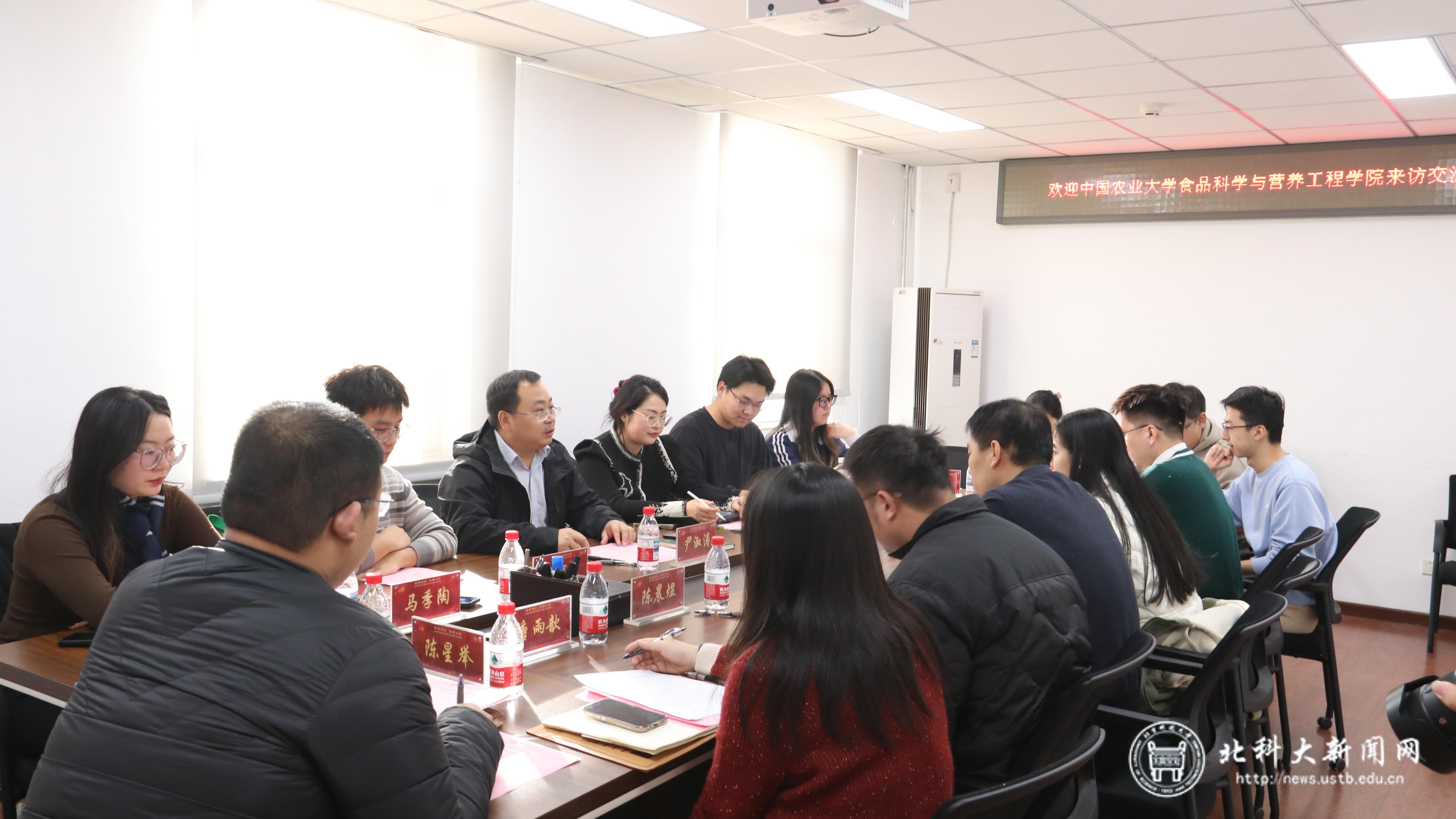 北科大新闻网12月18日电(通讯员 陈晨煜)12月16日,中国农业大学食品科学与营养工程学院与学校化学与生物工程学院学工交流座谈会在北科大化生楼215举行,双方围绕学生工作高质量发展进行深入交流。