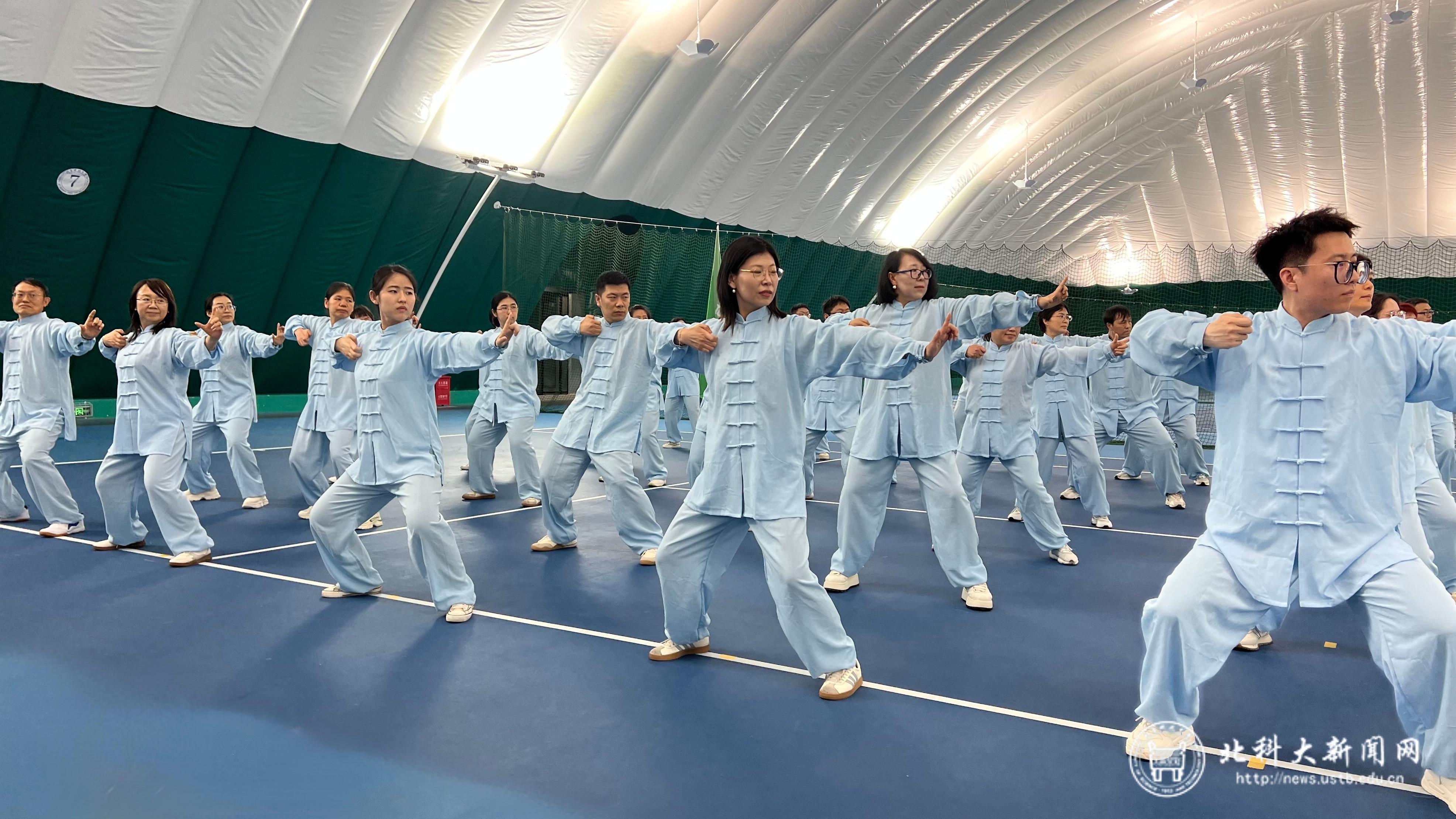 学院工会接到比赛通知后迅速响应,利用此契机积极动员教职工开展八段锦练习,并从其中组建起30人的参赛队伍。每周组织老师们集中训练,形成固定“工间操时间”,促进大家强身健体,强化健康理念,提升文化自信。训练中,参赛队员们相互纠正动作细节,反复打磨招式衔接,凝聚起强大的团队合力。