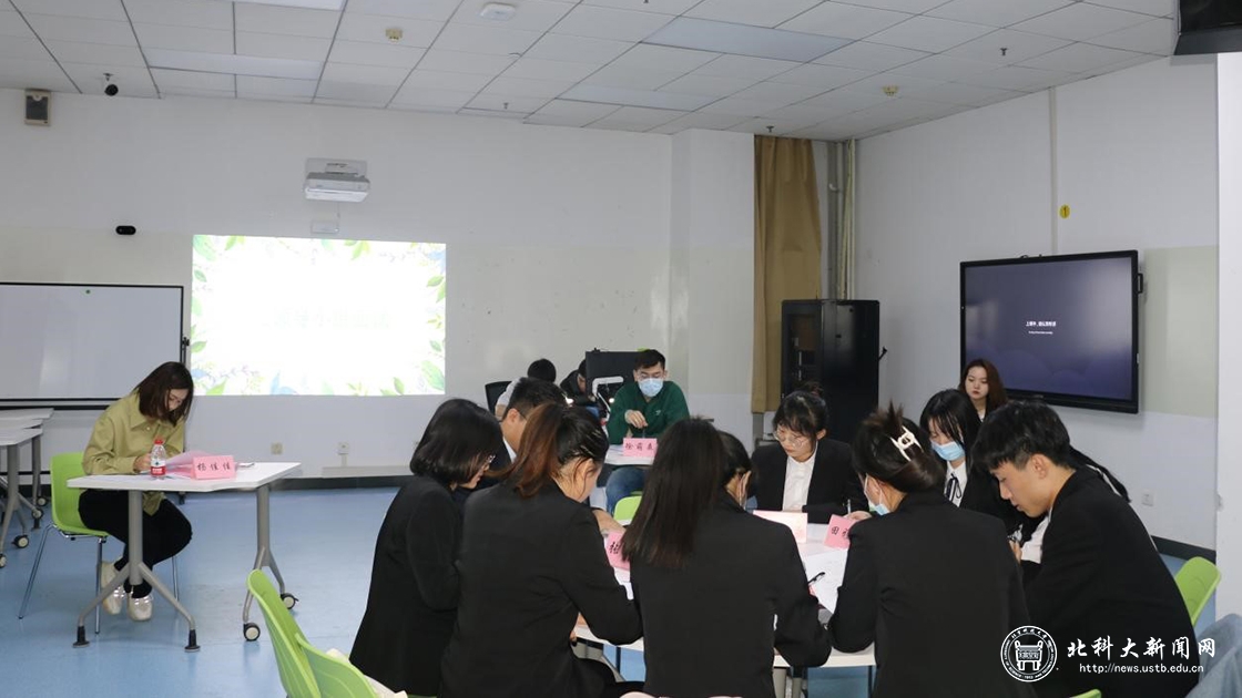 比赛开始前,主持人向大家详细介绍比赛的流程和规则。经过前期的简历报名,简历筛选后,进入无领导小组讨论环节。参赛选手分为三个小组,每个小组抽取一个题目,每组有四十分钟的时间,选手针对题目有独立思考的五分钟时间。在小组讨论环节,有的选手主动承担领导者角色,把控讨论时间,组织小组成员有序讨论,有的选手积极发表自己看法,展现独特风采,现场气氛紧张热烈,同时也有选手倾听其他组员发言,认真记录梳理。评委老师在每一个小组总结后对小组整体表现进行评价,再对选手的个人表现一一点评,提出针对性和建设性的意见。除了对比赛的点评,更是拓展到实际情况,使比赛和现实求职更加贴合。