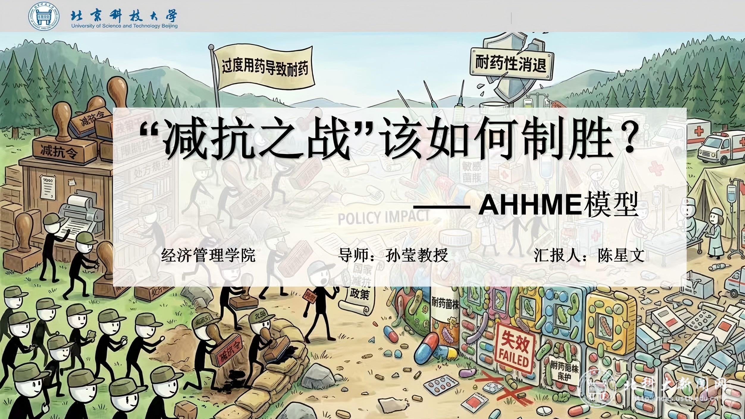 陈星文以“‘减抗之战’该如何制胜?”为题,在三分钟的时间里,讲述了如何利用AHHME模型帮助政策制定者锚定科学减抗的力度与方向。她通过改良AHHME模型,将流行病学模块与经济学模块相结合,以数据模拟政策表现,以经济检验政策成果,在制定减抗政策方面探索新方法、新思路。
