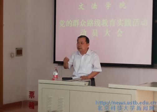 学院党委书记赵雨代表学院党委作了题为“践行群众路线 聚焦作风建设,凝聚师生力量 推动学院发展”的动员报告。他从“深刻认识开展群众路线教育活动的重要意义”、准确把握教育实践活动的主要内容和总体要求”、“紧密结合学院实际,扎实有效推进教育实践活动”三个方面,就开展党的群众路线教育实践活动的进行了动员部署和详细介绍。赵雨强调,学院领导班子和领导干部要以教育实践活动的开展为契机,把为民务实清廉的价值追求和学院的发展、师生的切身利益深深植根于干部、党员的思想和行动中。他指出,开展党的群众路线教育实践活动是一项重要政治任务,党员领导干部要高度重视,精心组织,扎实推进,抓好教育实践活动各项工组,以推动学院科学发展、促进学院和谐稳定的实际成效为学院党代会的顺利召开提供坚强的思想、政治和组织保证。