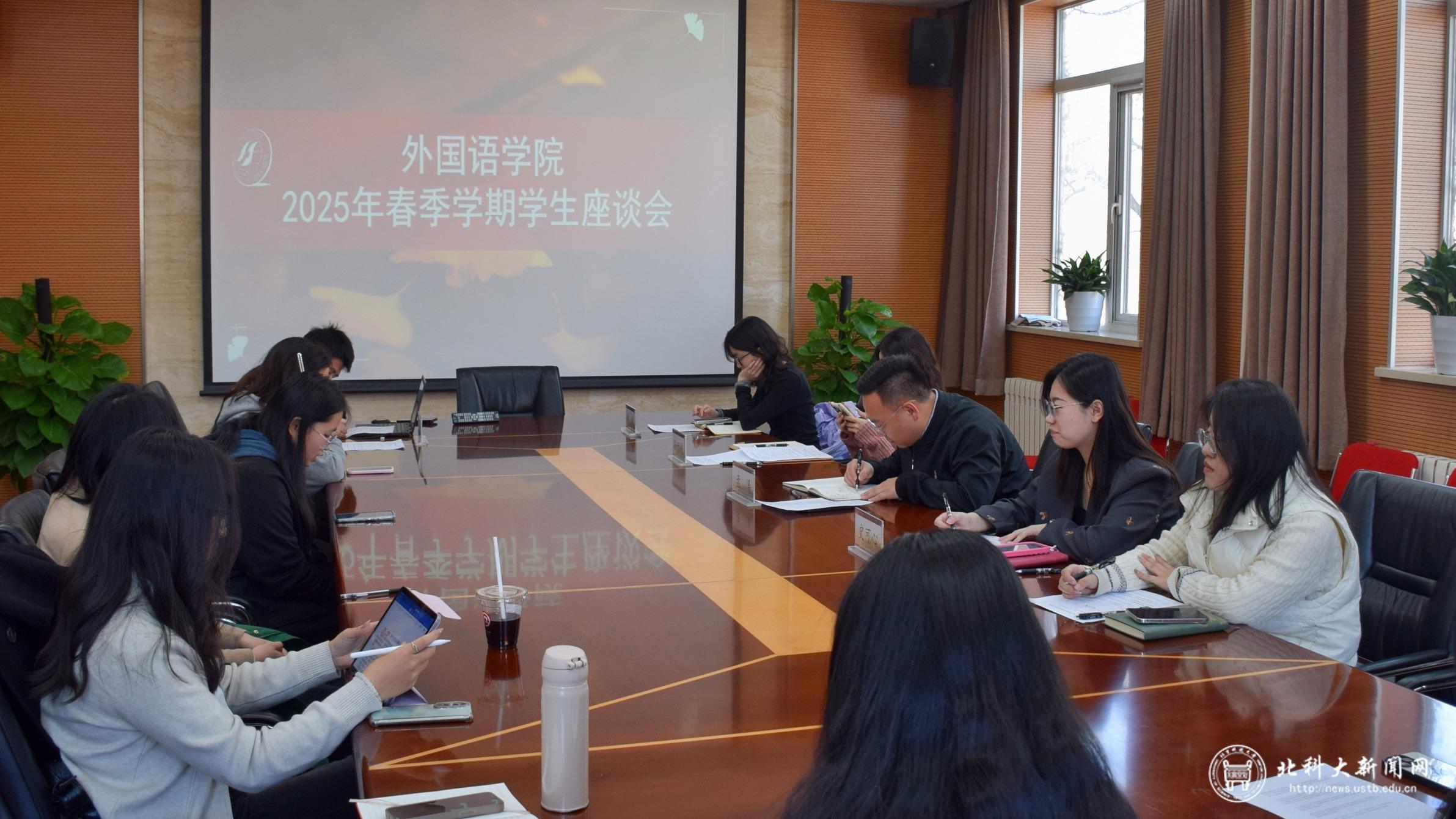 为全面、及时地把握新学期学生适应情况和思想动态,增强日常思想政治教育工作的针对性和实效性,3月12日,外国语学院召开2025年春季学期学生座谈会。学院党委副书记、副院长孟涛,全体辅导员与各年级学生代表展开交流,会议由辅导员李进主持。