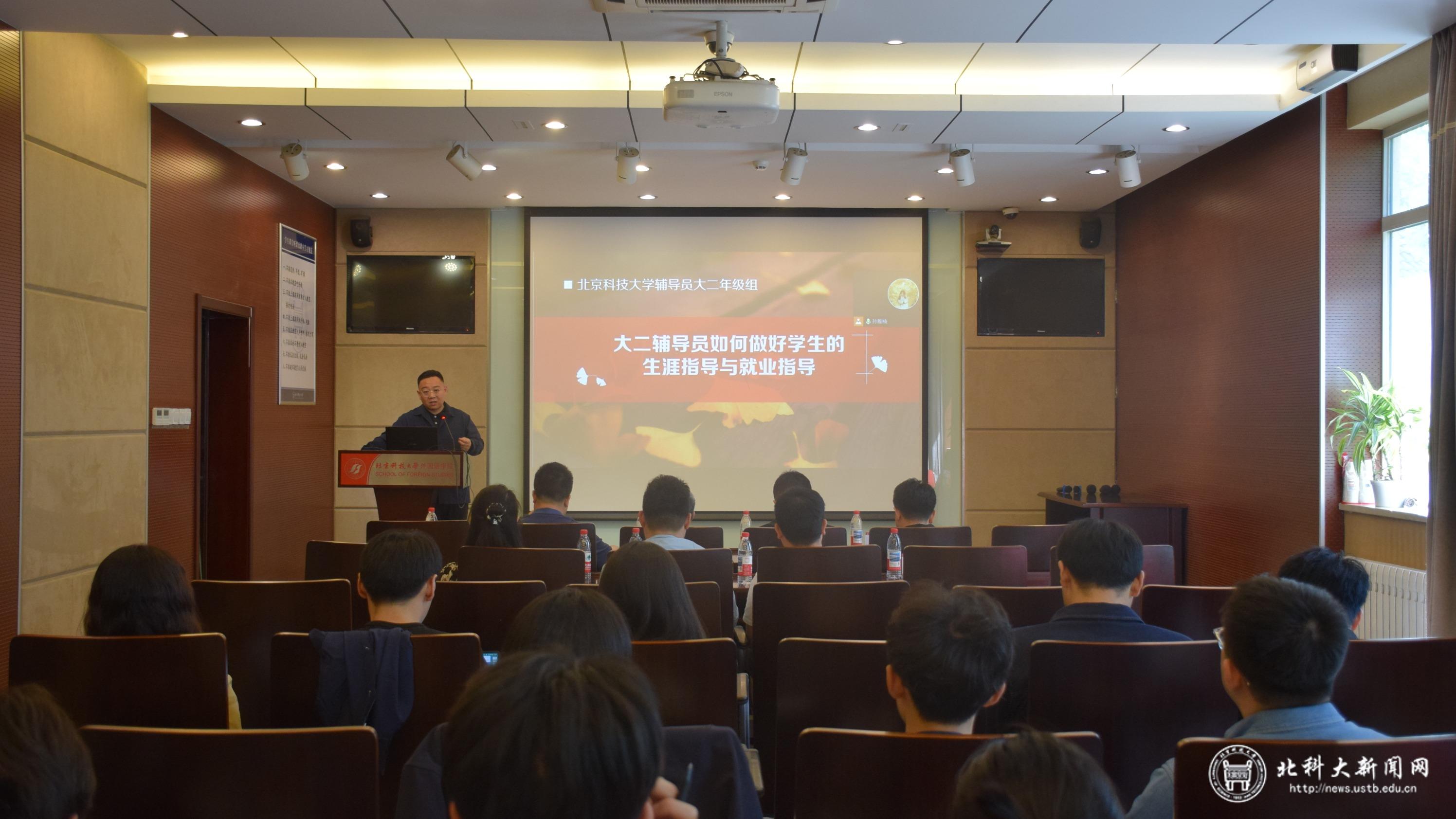 为加强辅导员在生涯规划与就业指导方面的专业能力,更好地服务学生成长成才,4月28日,学校2023级本科生辅导员年级组在外语楼315举办了“大二辅导员如何做好大学生生涯规划和就业指导”主题活动。学生工作部副部长王斌、数理学院党委副书记陈雷、化学与生物工程学院党委副书记于群、创新创业学院党委副书记邓张升出席活动。活动还邀请了金石精研海外销售总经理何芳、策马翻译副总经理郭艳卿、新东方金牌讲师韩晓茜等企业嘉宾进行分享交流,各学院大二年级辅导员全程参会,会议由外国语学院党委副书记孟涛主持。