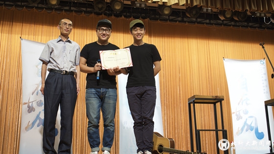 “自在如风是我们给自己的关键词,希望你们也能自在如风。”6月9日晚7点,外国语学院银杏之声系列活动 “自在如风”好妹妹乐队高校巡回演讲在教职工礼堂圆满举行。好妹妹乐队主创秦昊和张小厚与同学们相约北科,分享了他们关于青春与音乐的故事。外国语学院武冠雄老师为其颁发外国语学院“学生成长导师”聘书。
