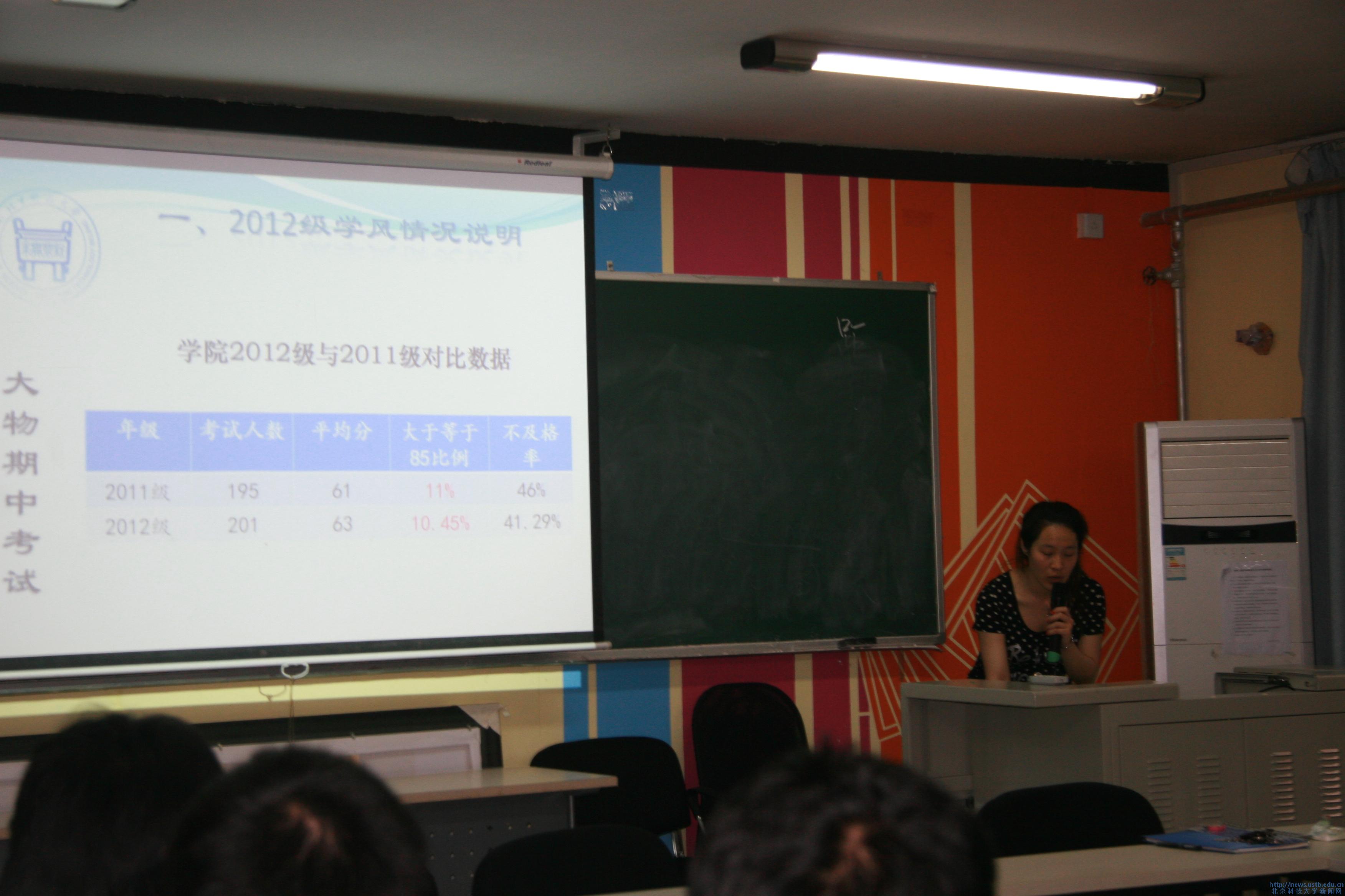 会上,12级辅导员首先就开学来12级的学风情况向大家进行了汇报。结合学生各科期中考试成绩、学风调研、及宿舍课堂走访的相关数据,12级辅导员就期中考试各科考试的成绩分布、转专业意向、双二辅录取情况,任课教师评价反馈等多方面内容进行了详细的分析。此外,辅导员也特别提出了12级目前学风建设中暴露出来的种种问题,引发同学们的思考。