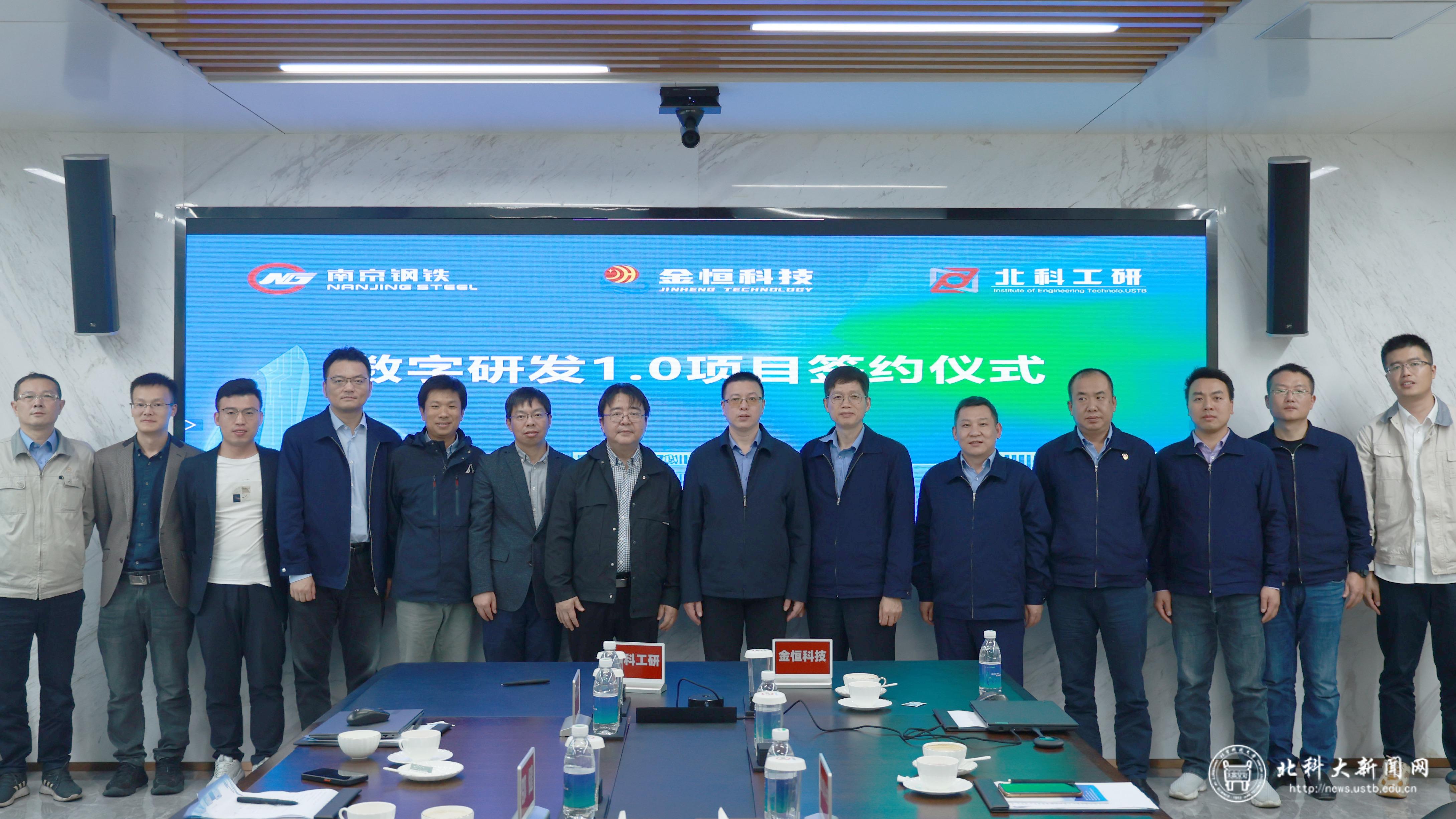 10月22日,学校工程技术研究院(下称北科工研)和南京钢铁集团有限公司(下称南钢集团)、江苏金恒信息科技股份有限公司(下称金恒科技)就“南钢数字研发1.0”项目举行了签约仪式。南钢集团副总裁谯明亮、新材料研究院院长陈林恒、金恒科技副总经理李井先、北京科技大学工程技术研究院党委书记陈雨来、副院长邵健、研发部部长宋勇以及相关部门负责人和技术专家出席了签约仪式。