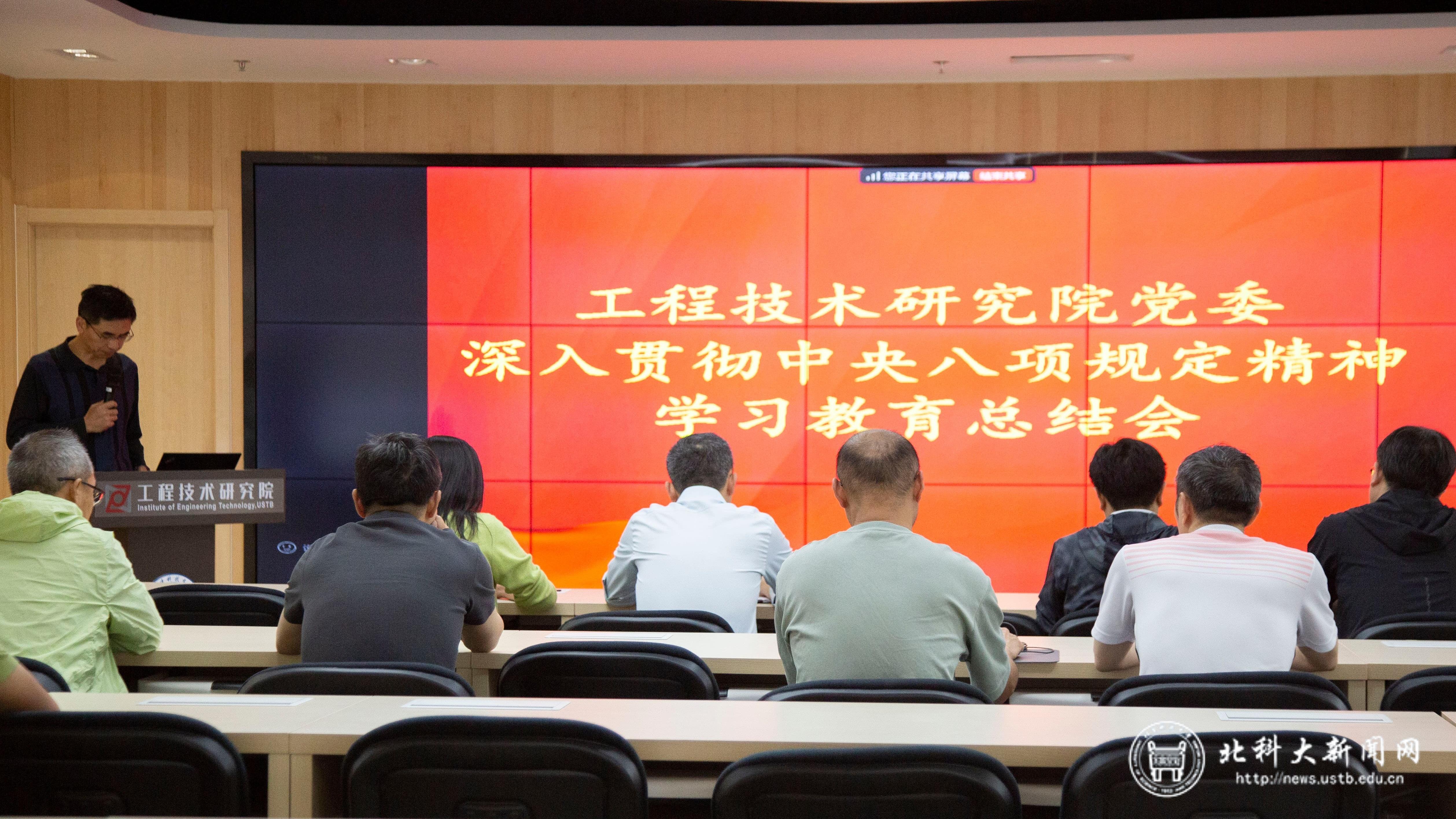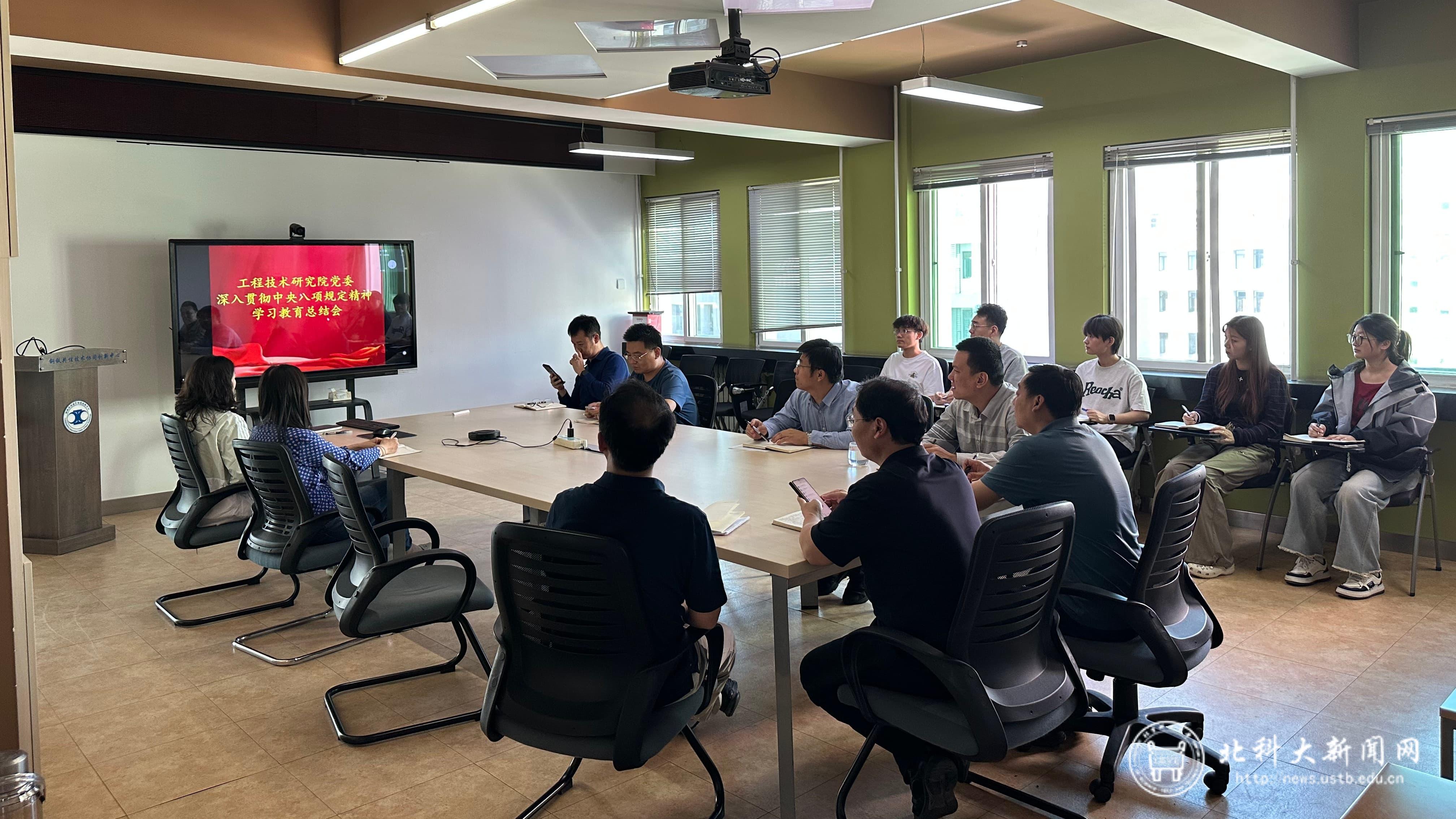 北科大新闻网9月20日电(通讯员 武冬海)9月19日,工程技术研究院(以下简称“工研院”)党委召开深入贯彻中央八项规定精神学习教育总结会。工研院党委书记何安瑞作总结报告,工研院和钢铁共性技术协同创新中心(以下简称“协创中心”)领导班子成员,各部(所)长、师生党支部书记分别通过线上线下相结合的方式参会,会议由工研院院长张勇军主持。